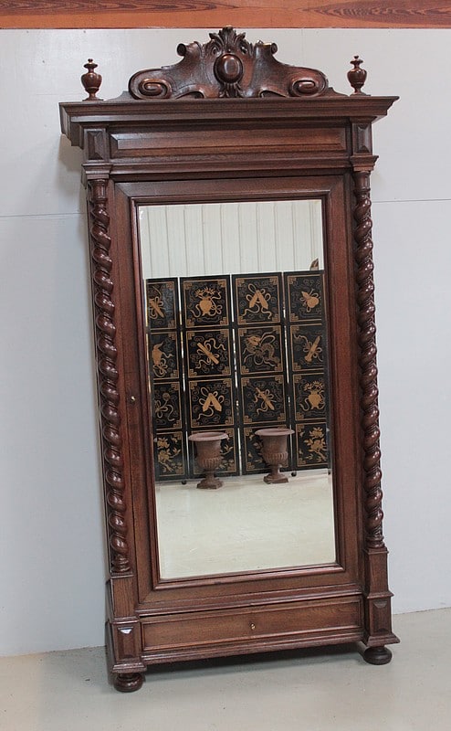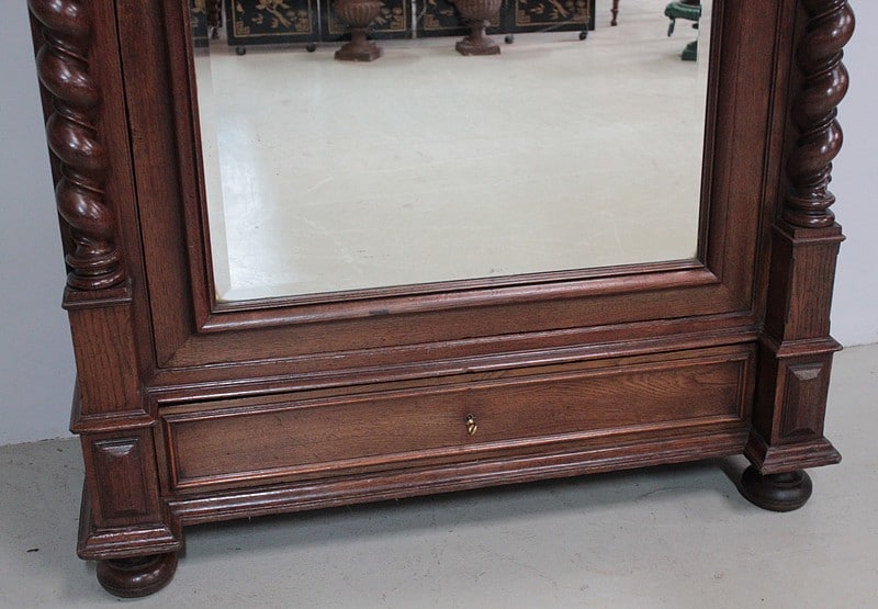 Armoire en chêne dans le goût Louis XIII ouvrant par une porte à glace et un tiroir en partie basse.