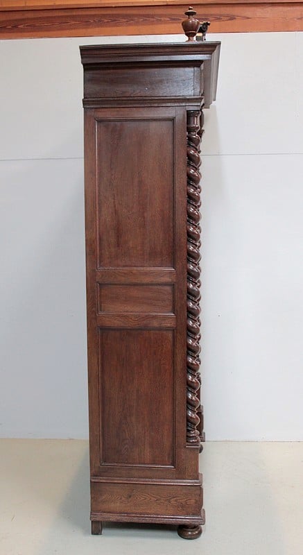 Elle est encadrée de deux colonnes torsadées et repose sur des pieds galette.