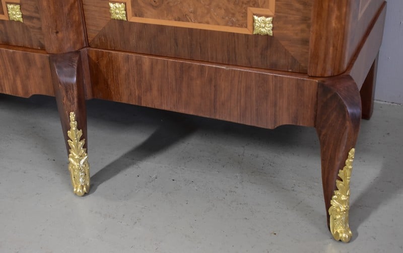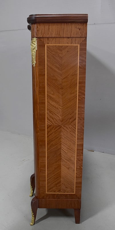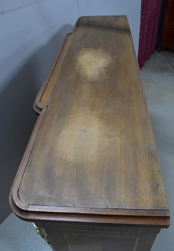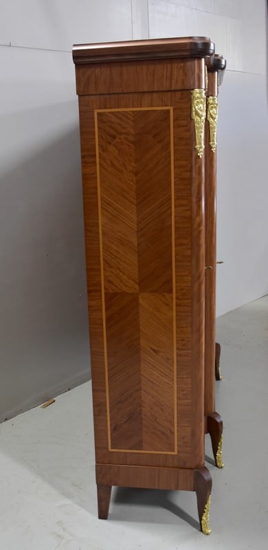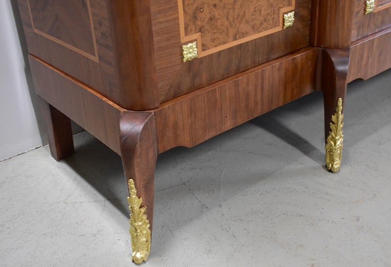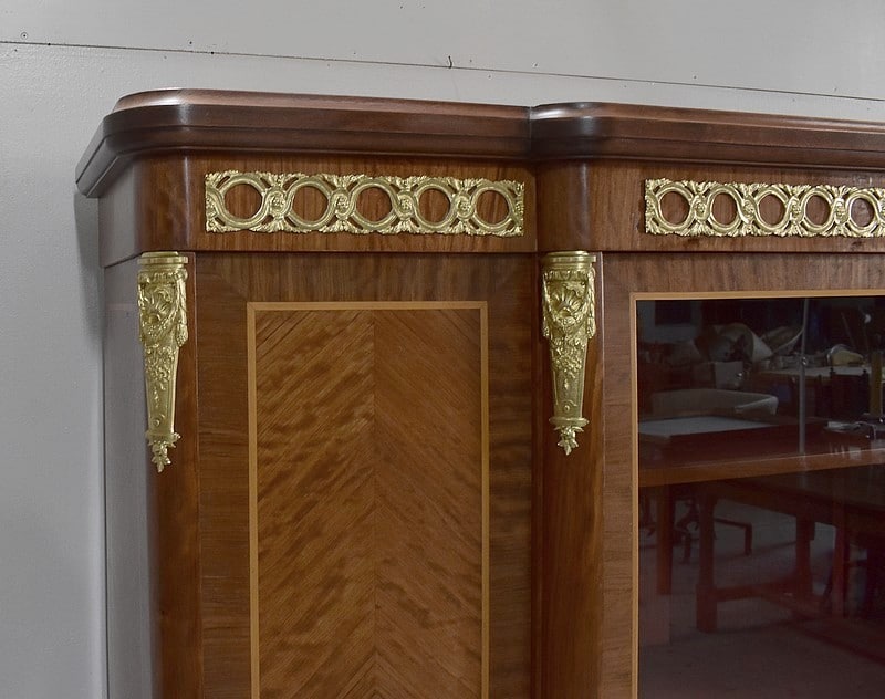 Enfin, il s’agit d’un meuble entièrement démontable par vis de rappel. Fabrication parisienne d’une grande élégance avec des bois précieux.