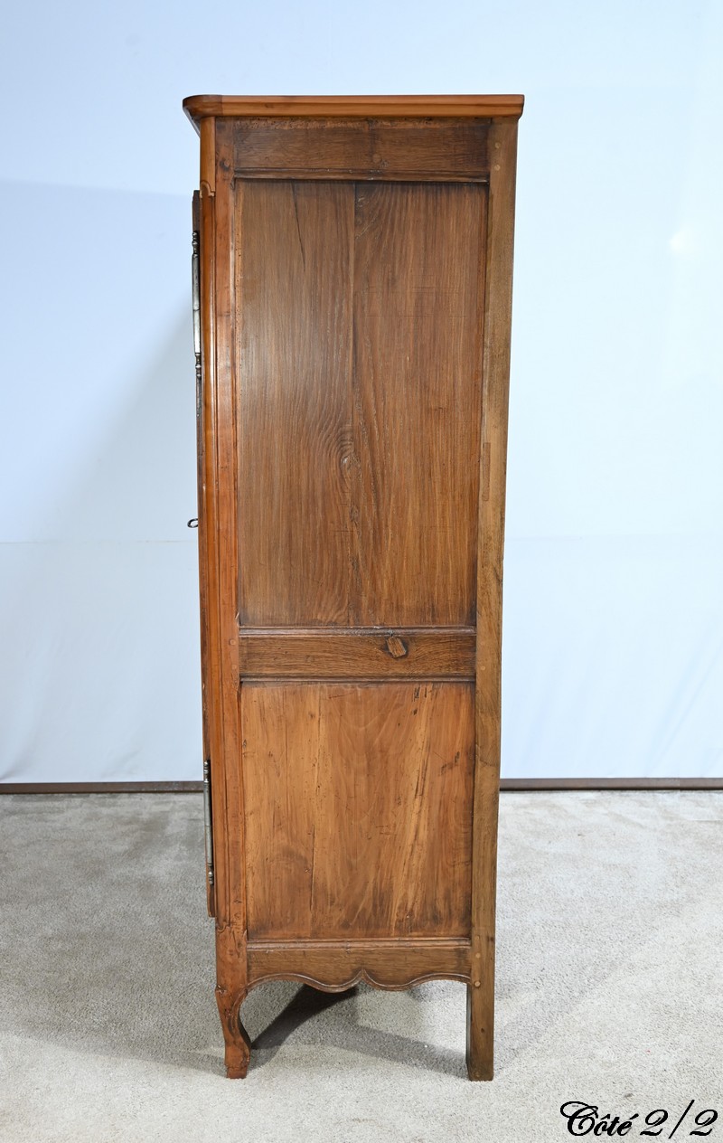 Cette petite armoire, communément appelée « Bassette », présente un corps en merisier massif et des côtés en chêne.
