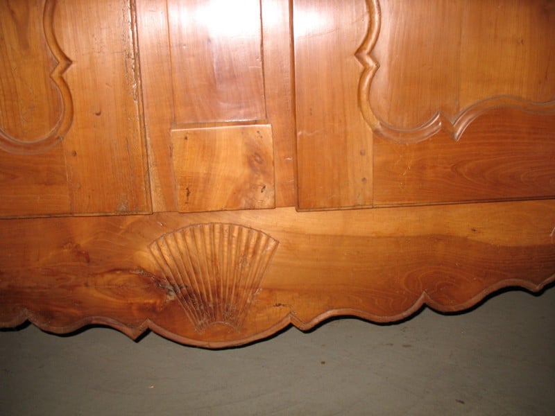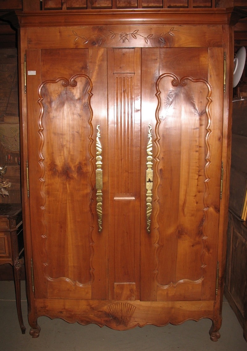 Armoire Louis XV en merisier avec portes médaillons et décor haut et bas. Région Nantaise. Premiere partie du XIXe.