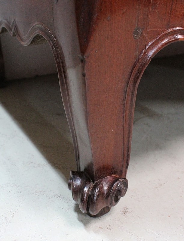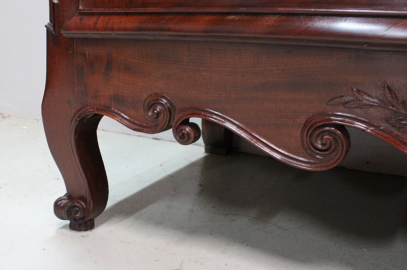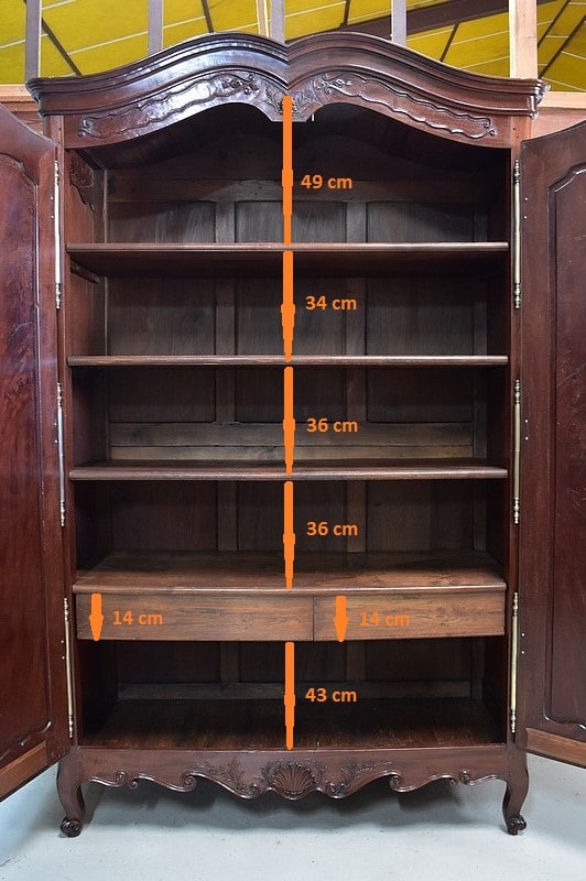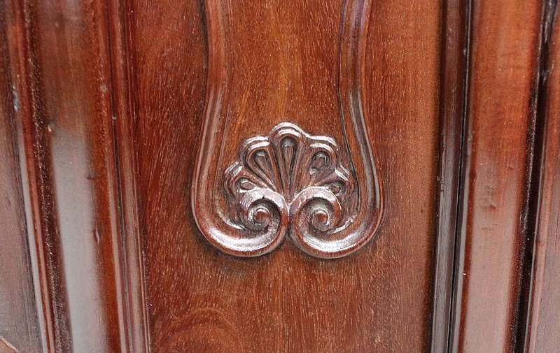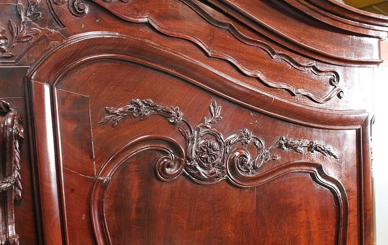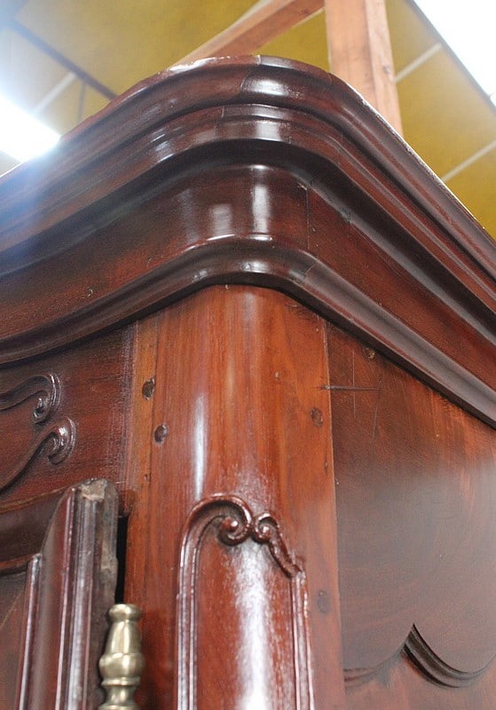 On précisera que cette Armoire est répertoriée dans le livre ‘Le Décor Nantais de l’Armateur au XVIIIe siècle’, par Françoise Maillet. Outre ses 250 ans d’histoires, les atouts et la singularité de ce meuble Régional résident essentiellement dans la forme de sa Corniche et l’omniprésence de ses sculptures.