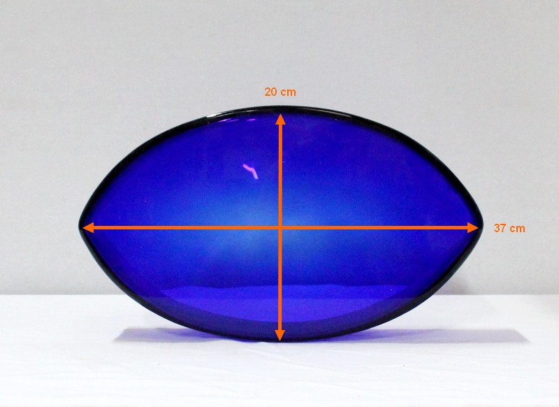 L’intérieur, amovible à souhait, est en verre de couleur bleu vermeil.
