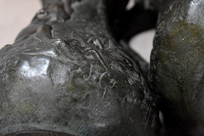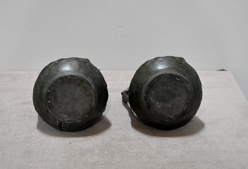 Les anses sont en forme de tronc d’arbre et l’intérieur comporte un récipient cylindrique d’un diamètre de 4,5 cm.