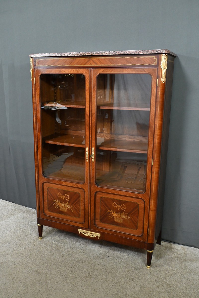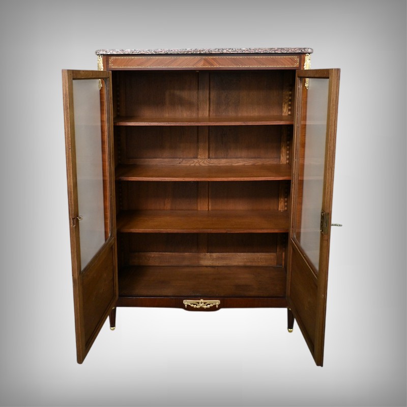 Élégance et finesse caractérisent cette remarquable bibliothèque de style Louis XVI, témoin de l’excellence artisanale du début du XXe siècle.