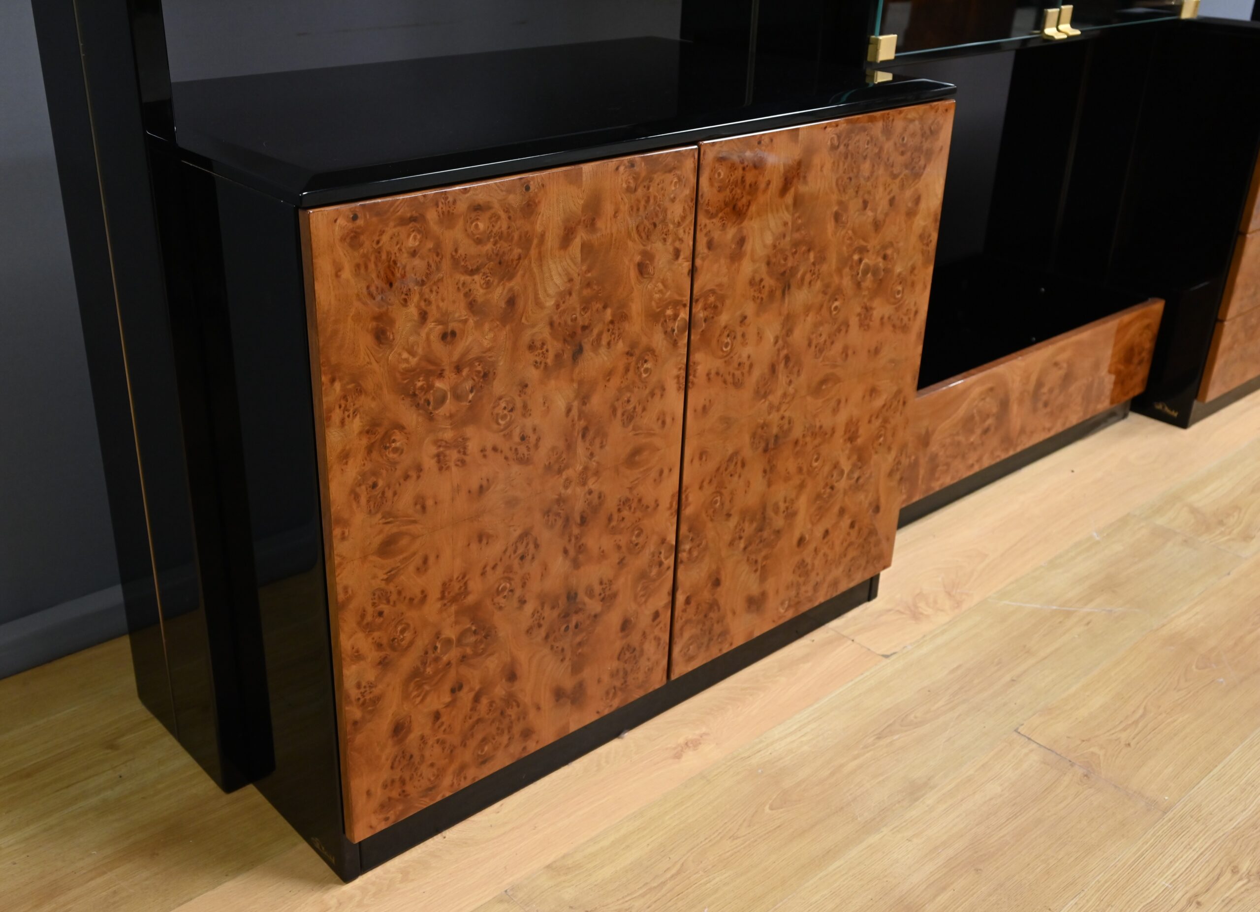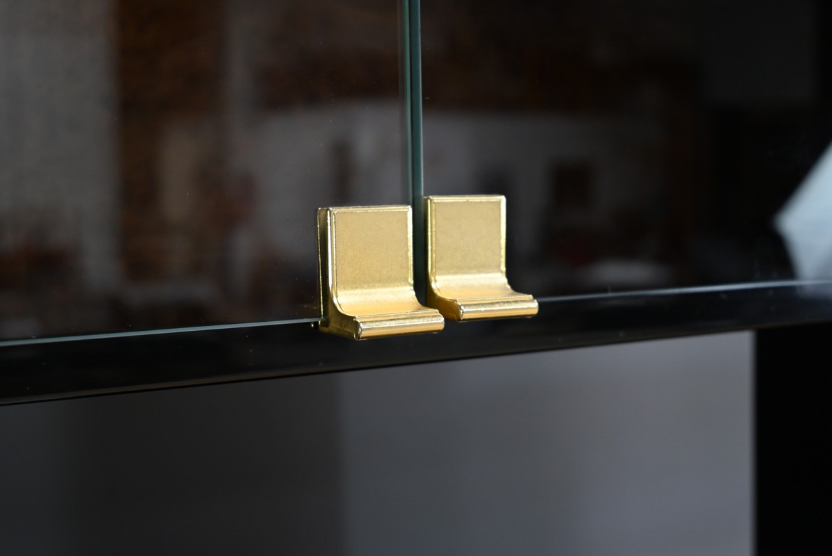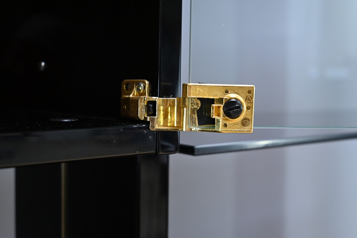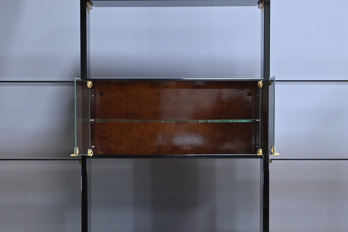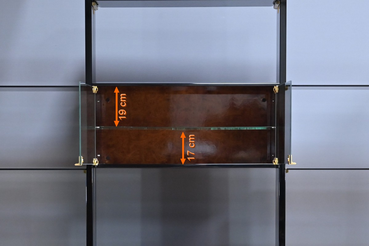 Deux modules à portes vitrées viennent parfaire l’ensemble, offrant une vitrine élégante qui protège tout en exposant les pièces précieuses.