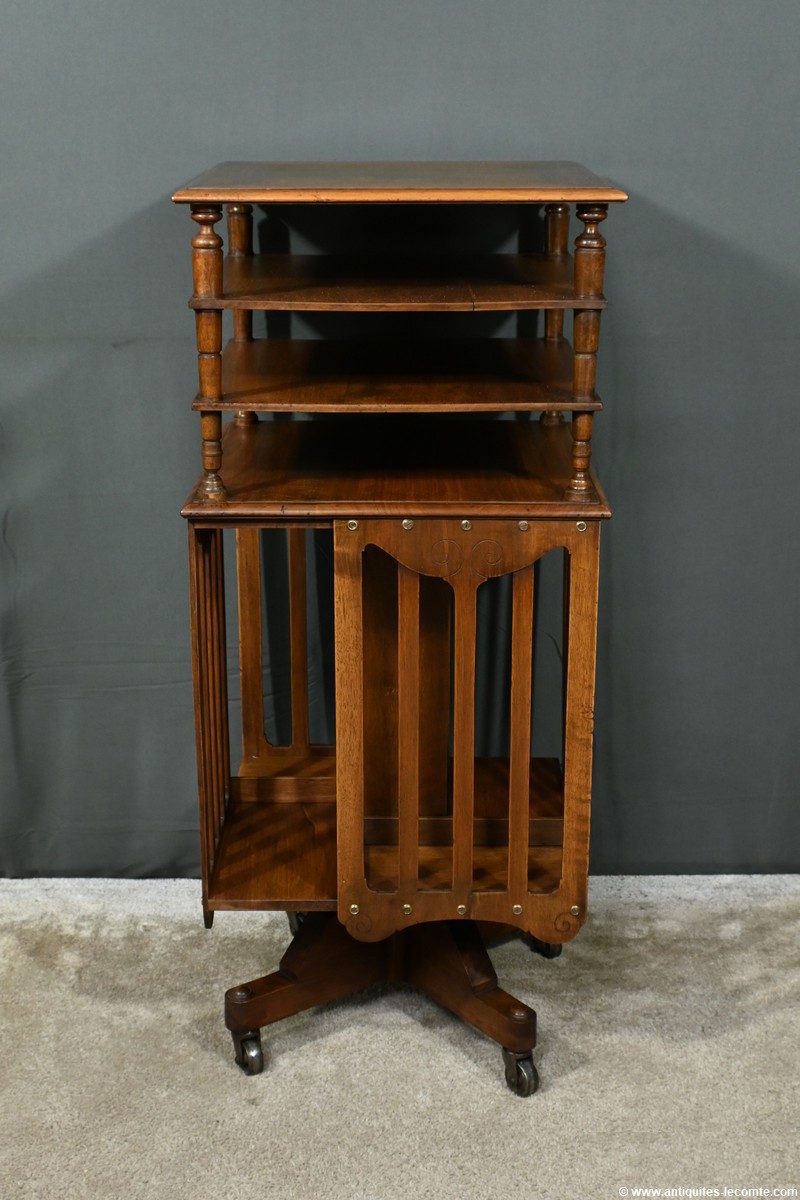 En somme, cette bibliothèque tournante en noyer de 1900 est une pièce unique qui combine à la fois beauté et utilité.