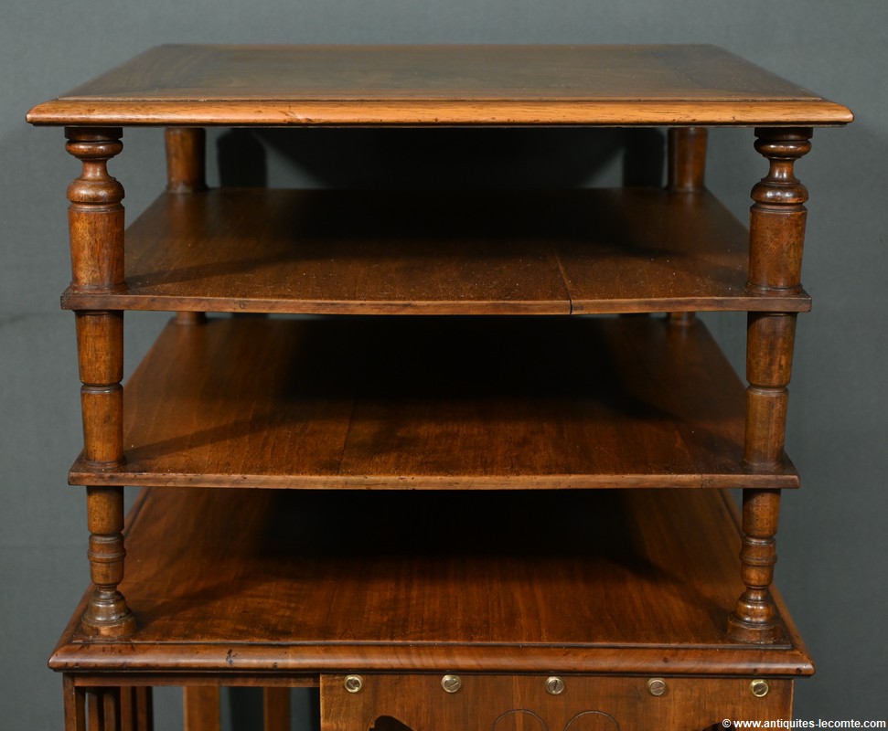 Ces étagères sont solidarisées par des montants tournés en fuseau, ajoutant une touche d’élégance et de sophistication.