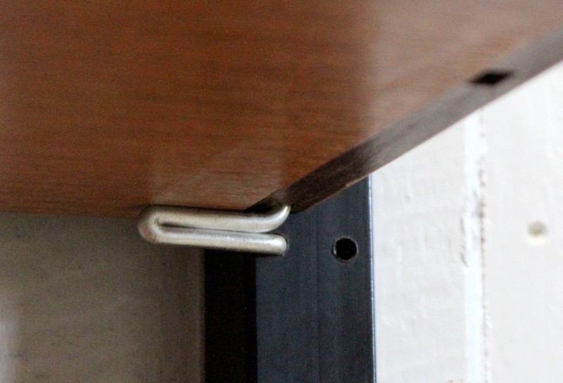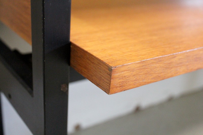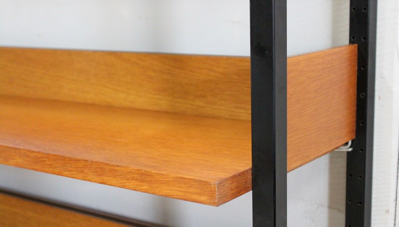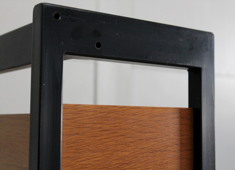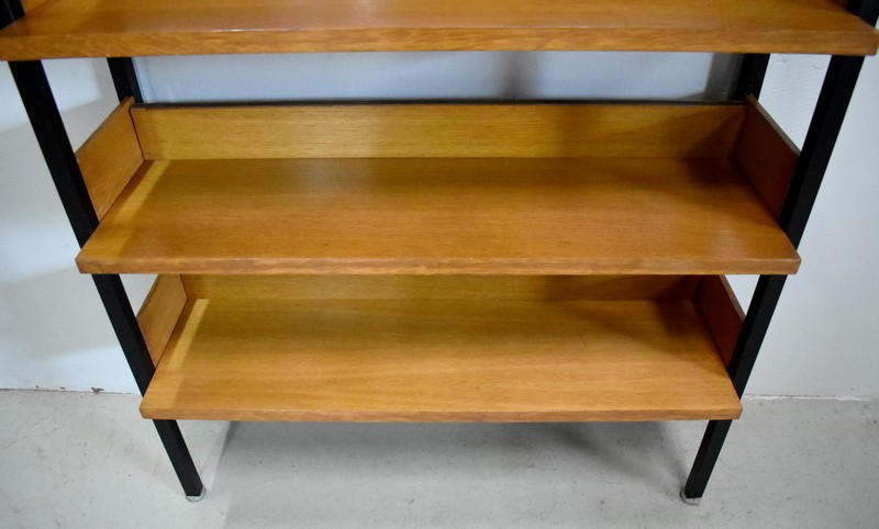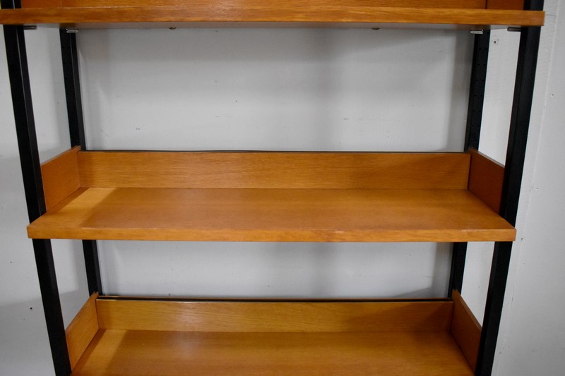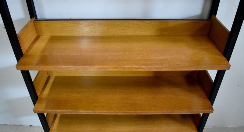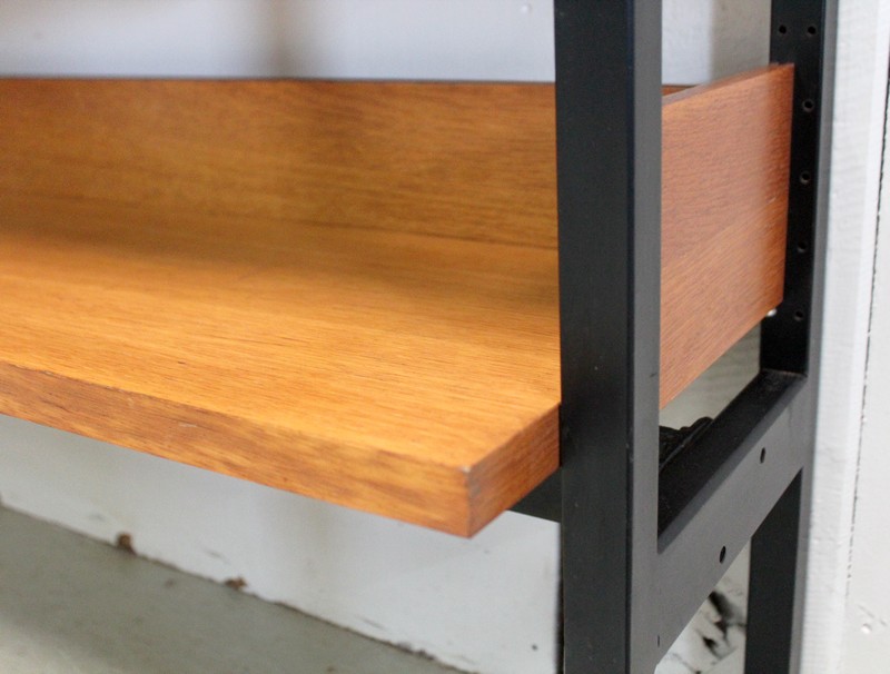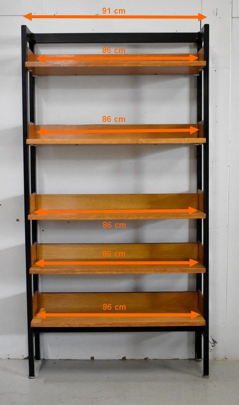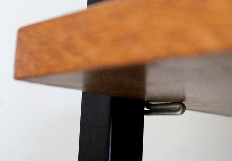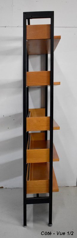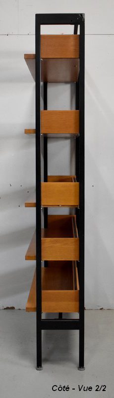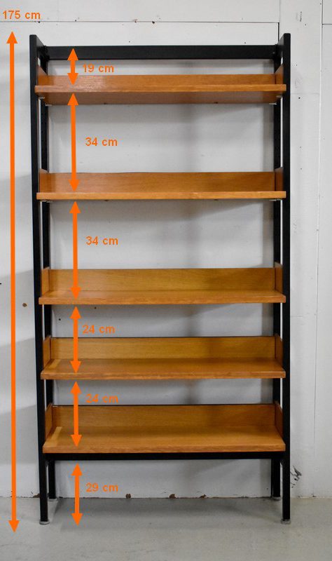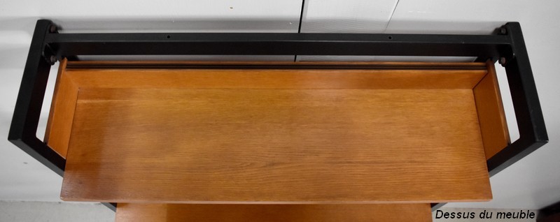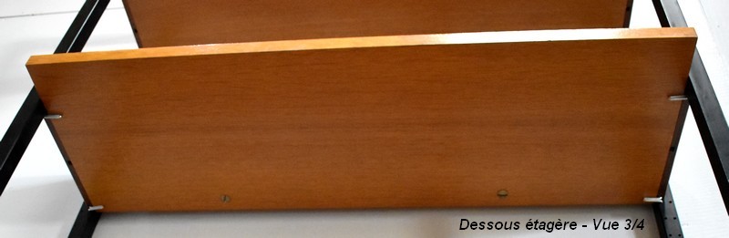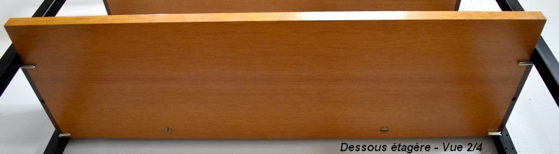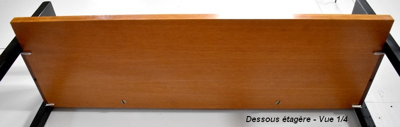 Cinq Tablettes plaquées en Chêne offrent une large capacité de rangement, et présentent sur la partie arrière une zone avec Encoches, dans laquelle des photos ou autre peuvent être glissées et affichées.