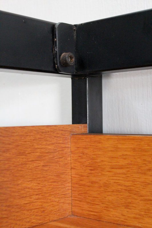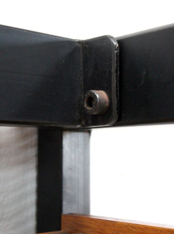 Sa Structure se compose de Métal tubulaire à section carrée de Couleur Noire. Les Côtés sont maintenus en partie haute par un Élément de Fer de forme rectangulaire.