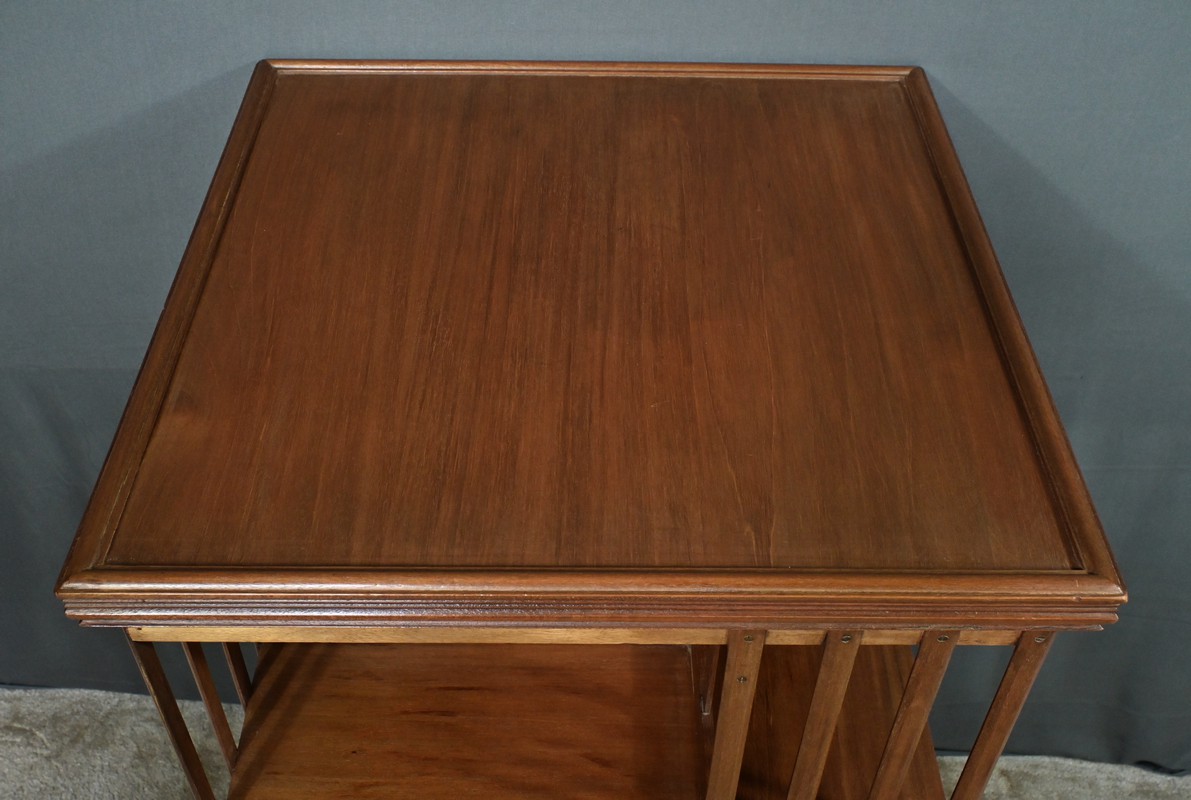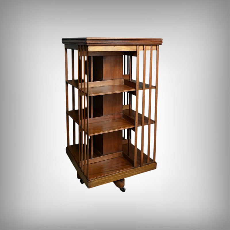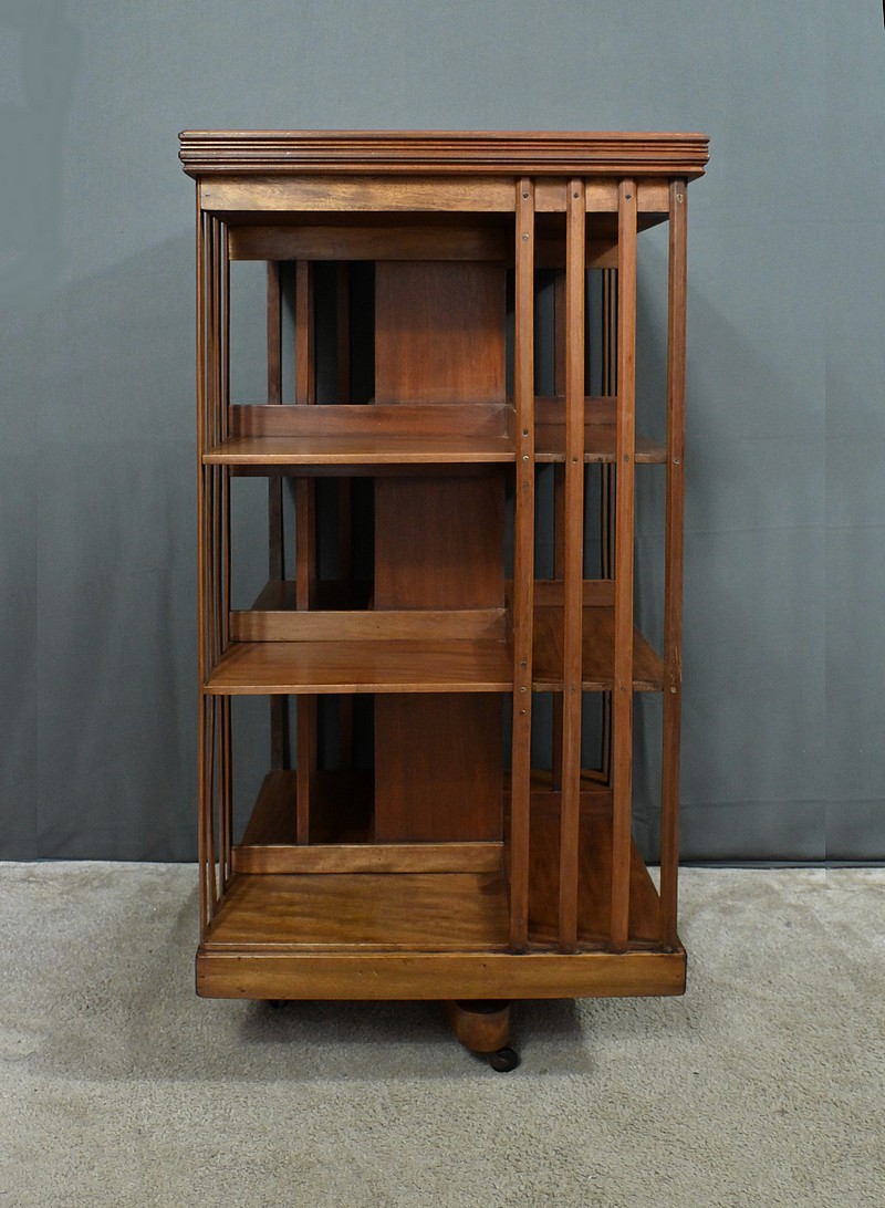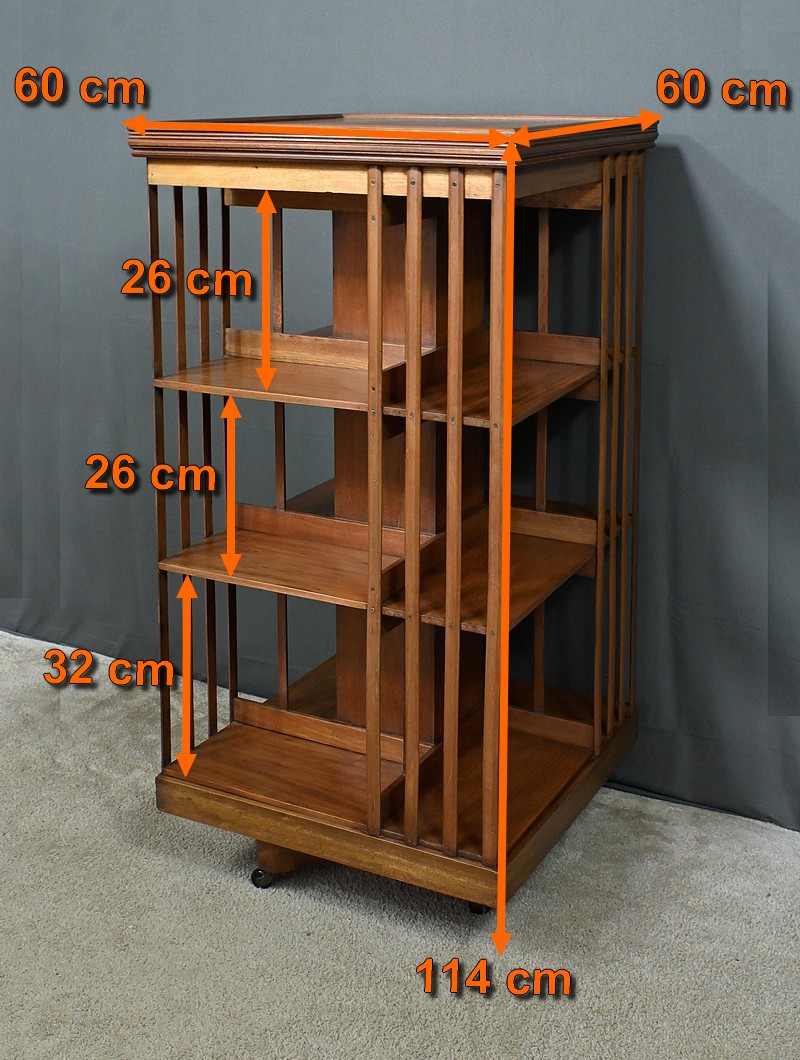Grande bibliothèque pivotante en acajou, incarnant le charme et la sophistication du mobilier classique britannique. Avec son design ajouré et ses trois niveaux de rangement, elle permet d’organiser vos ouvrages tout en conservant une esthétique raffinée. Son piétement à roulettes assure une mobilité aisée, offrant une flexibilité idéale pour ajuster son emplacement selon vos besoins. Cette bibliothèque est bien plus qu’un simple meuble : c’est un véritable élément décoratif et fonctionnel, parfait pour enrichir un bureau, une salle de lecture ou un salon avec une touche d’élégance et d’authenticité.