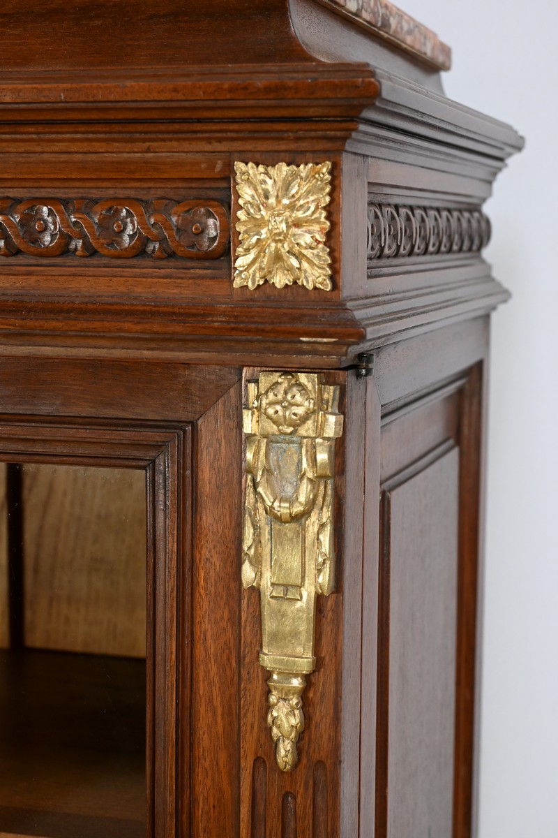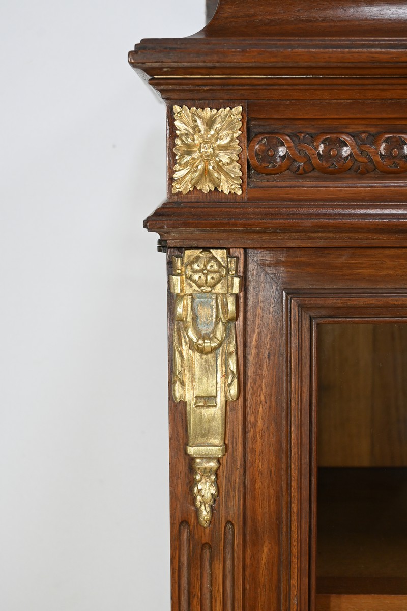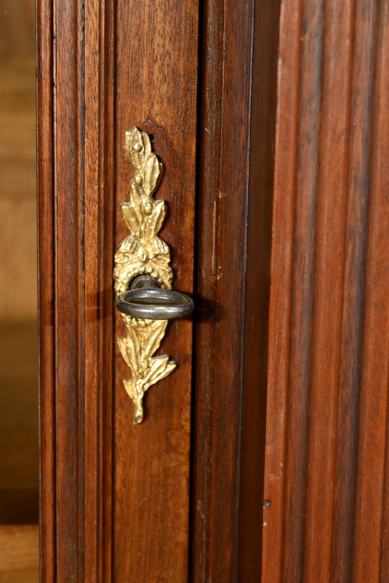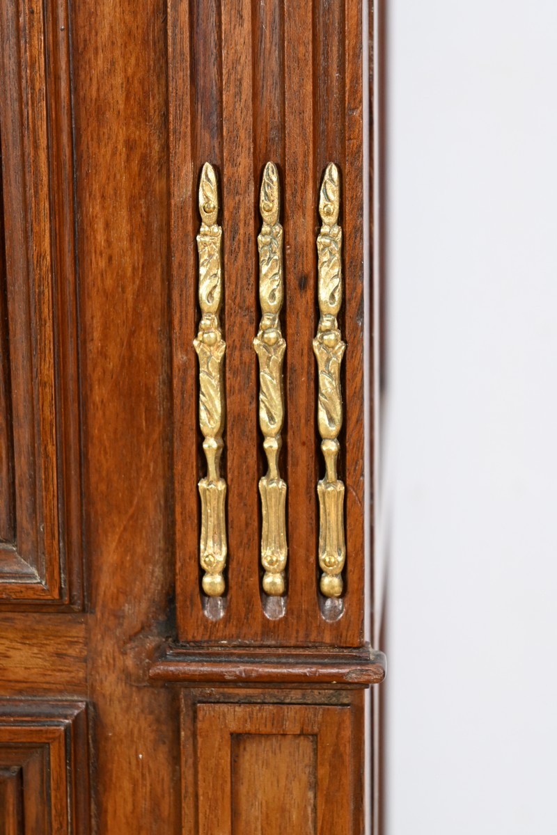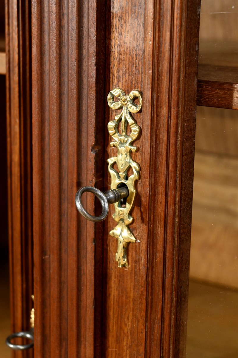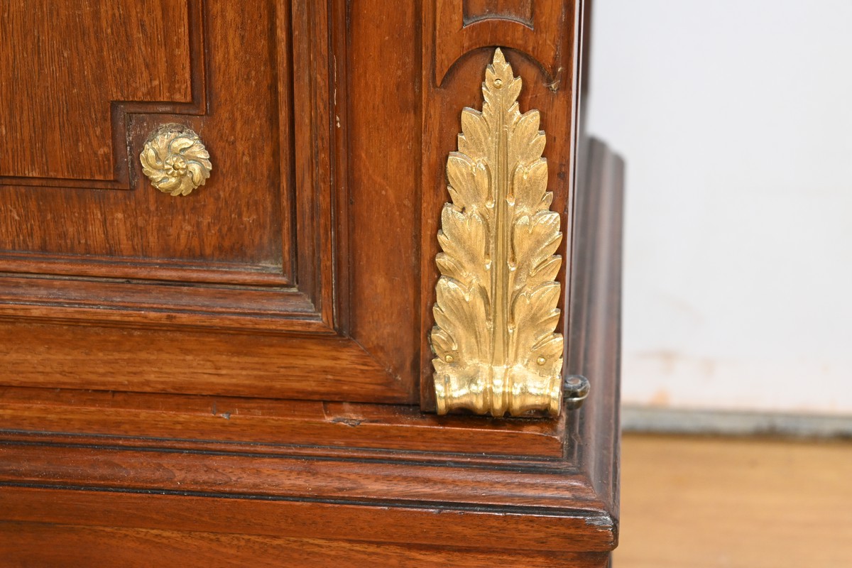 Les portes sont équipées de serrures d’origine avec des entrées en bronze ciselé, révélant trois étagères montées sur crémaillères.