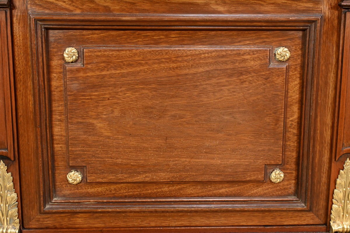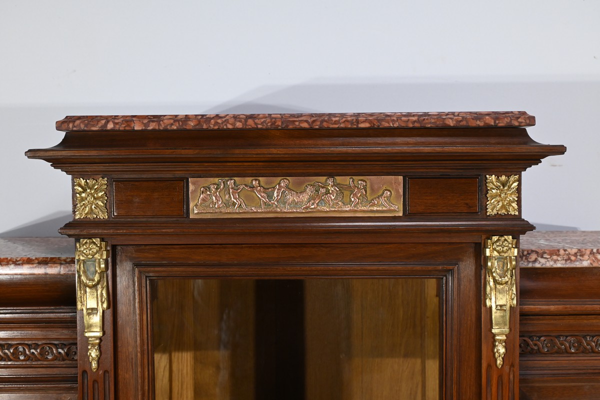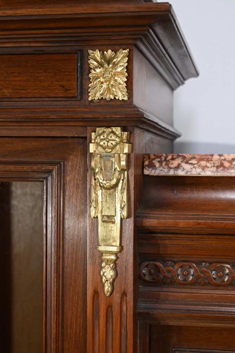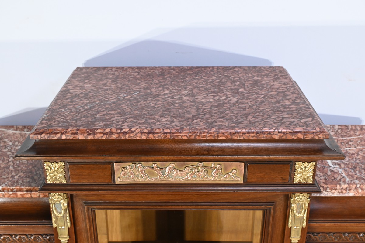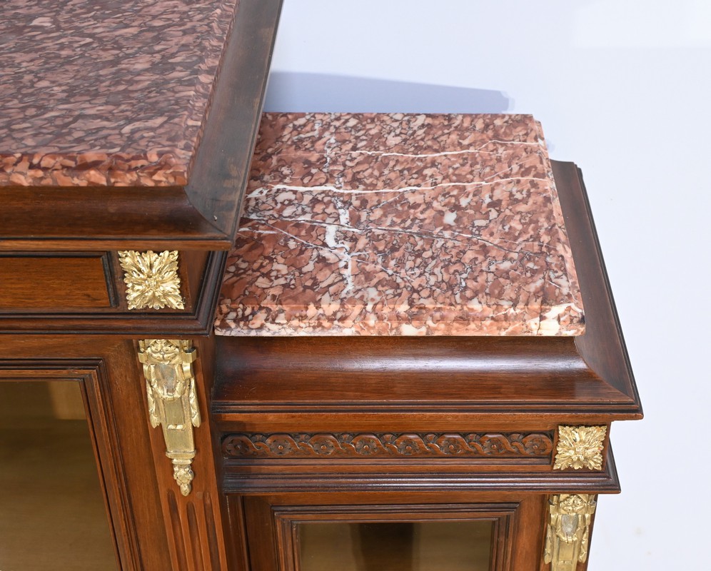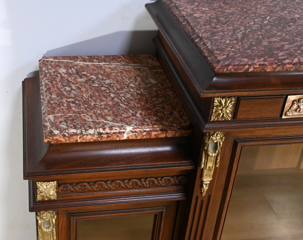 Le meuble est couronné de trois plaques de marbre brèche de Guillestre, offrant une finition luxueuse.