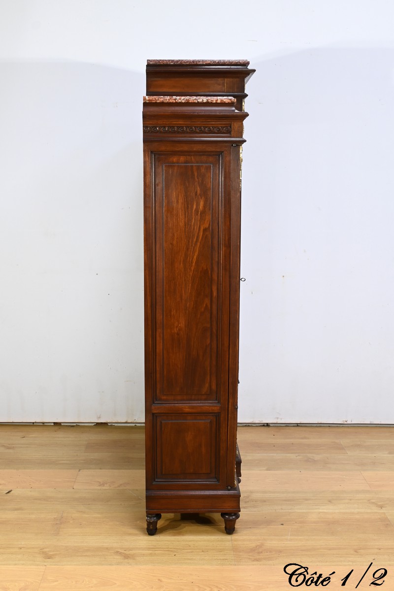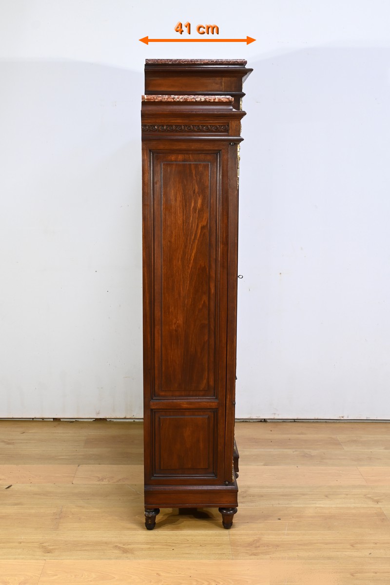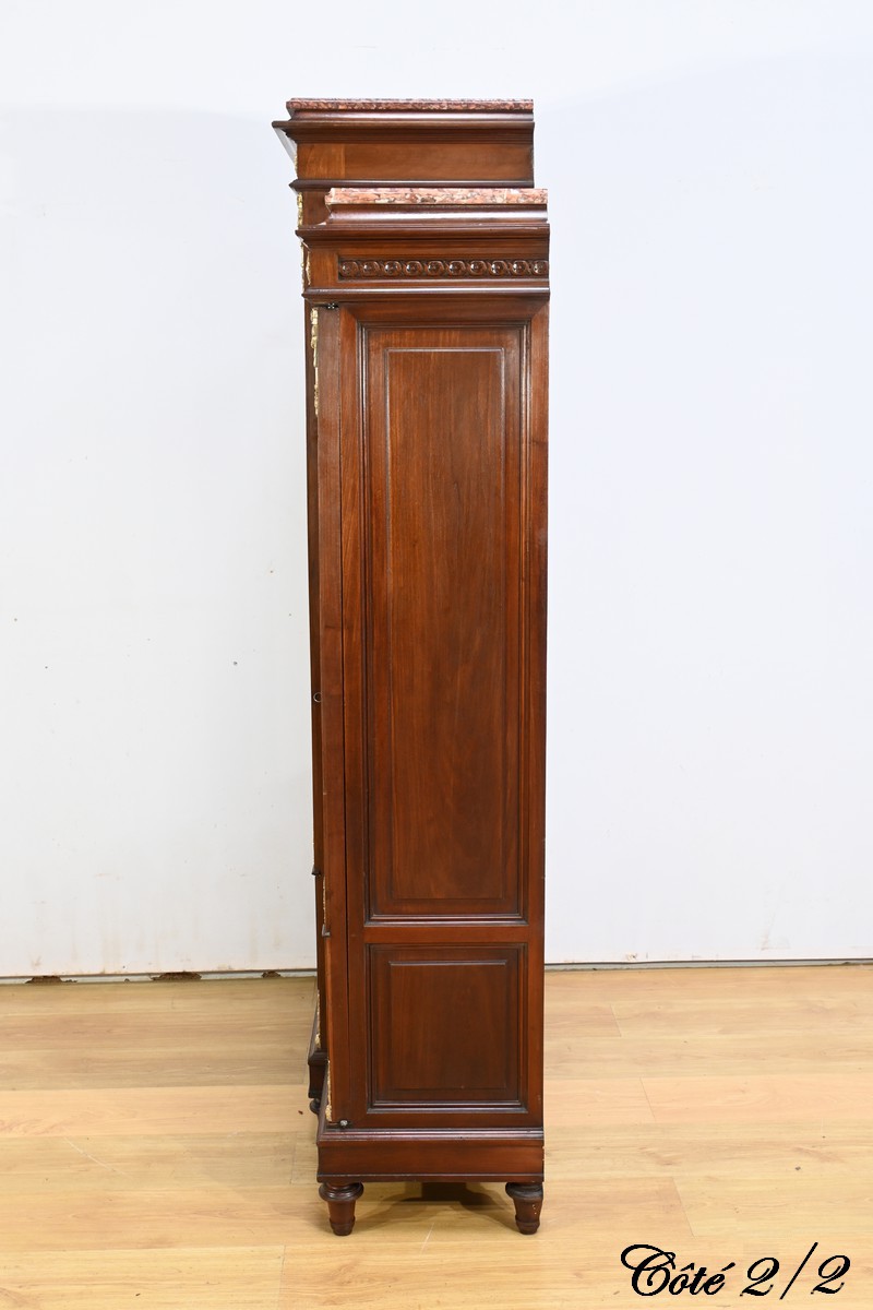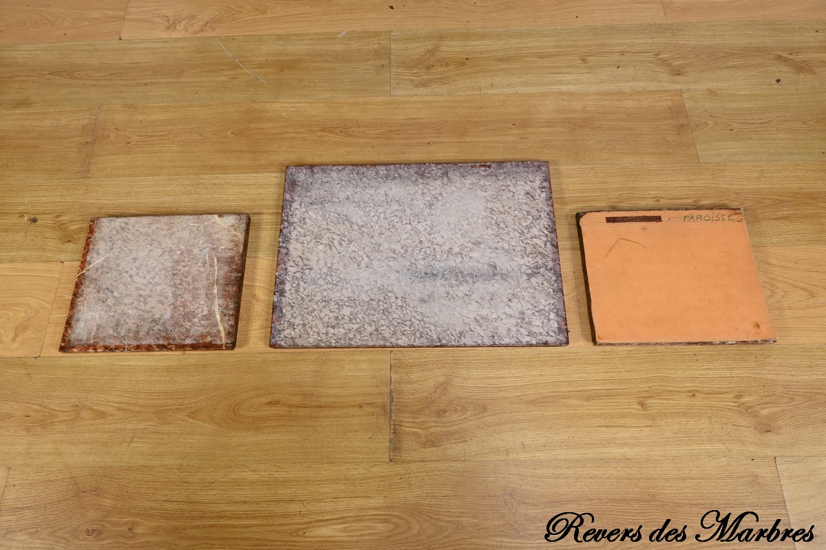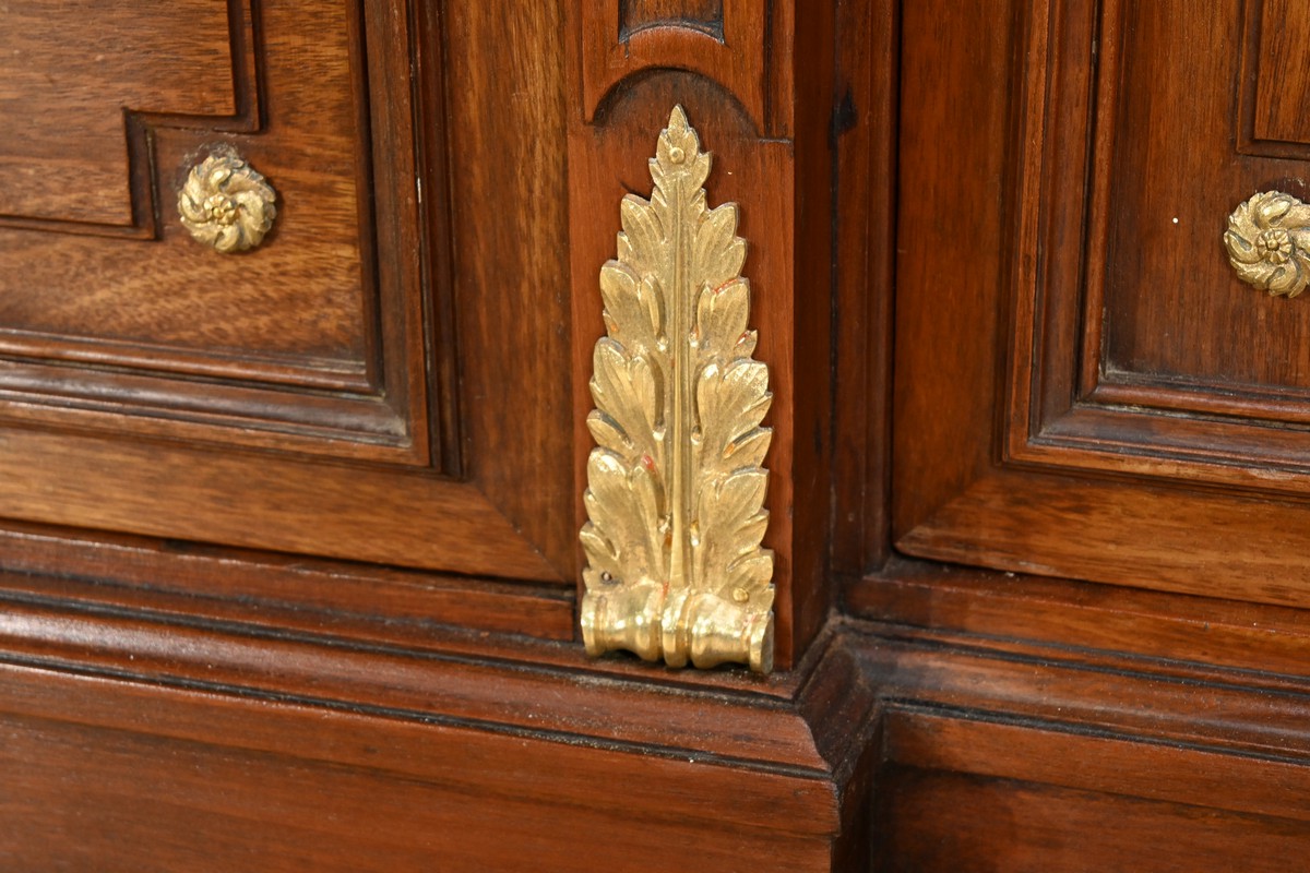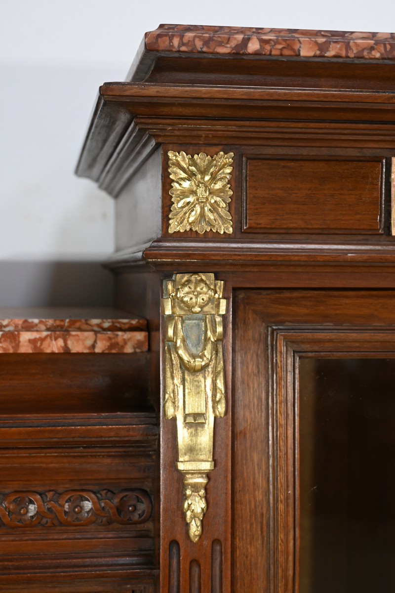 Le meuble est couronné de trois plaques de marbre brèche de Guillestre, offrant une finition luxueuse.