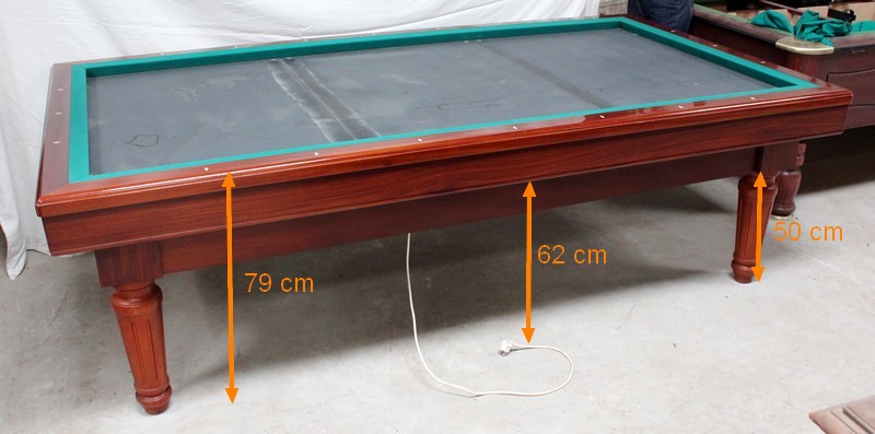 Ce modèle est équipé d’un Système de Chauffage par Résistances Électriques fonctionnel placé sous les Plaques d’Ardoise, destiné à tendre le drap de Billard pour assurer un meilleur Roulement des Billes.