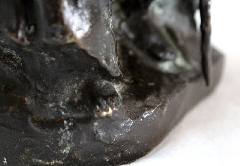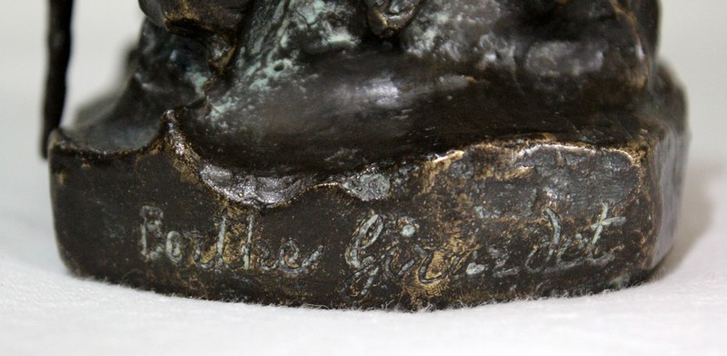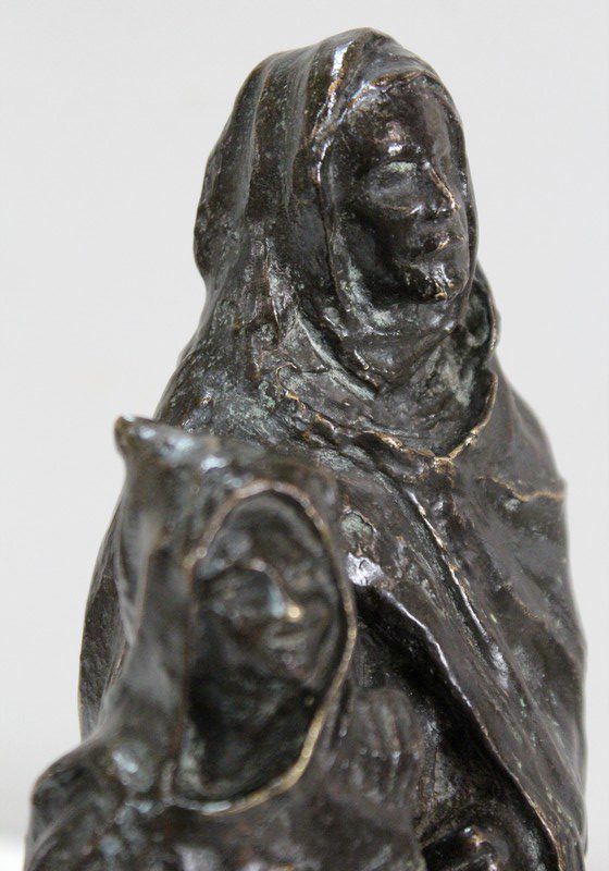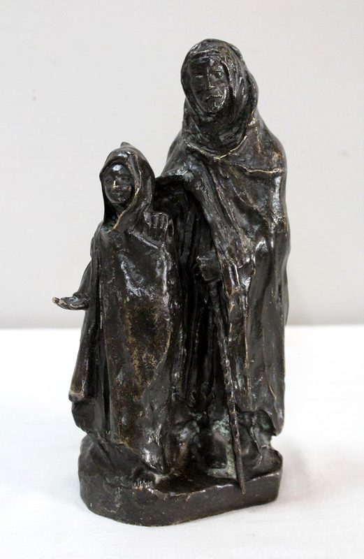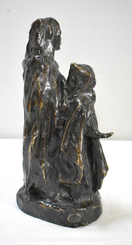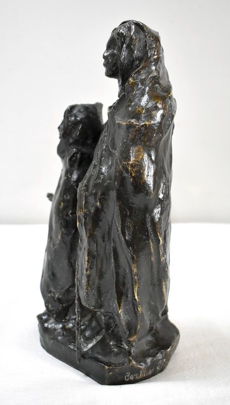 Épreuve en Bronze à Patine Brune intitulée « L’Enfant et l’Aveugle », signée de la Sculptrice Marseillaise Berthe Girardet ( 1861 – 1948 ).