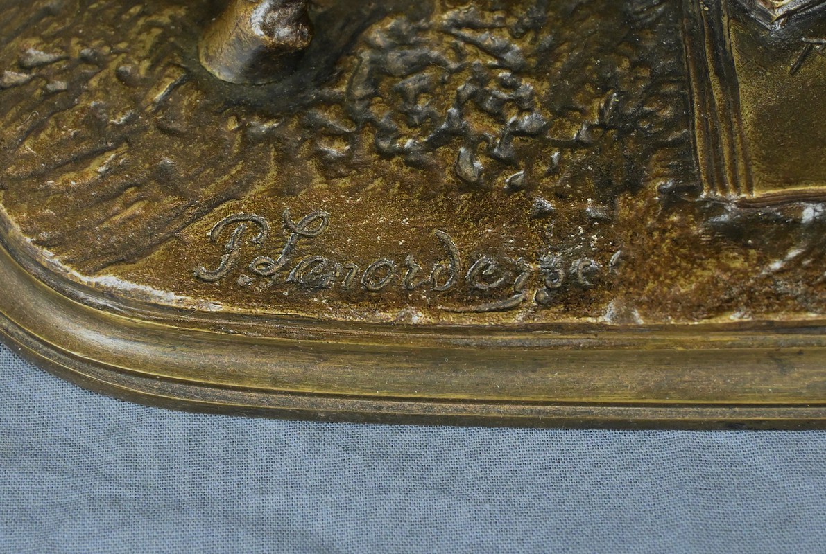 Pierre Lenordez (1815-1892) était un sculpteur français spécialisé dans la représentation des chevaux. Son travail en bronze, très détaillé et expressif, était particulièrement prisé dans le milieu des courses hippiques. Installé à Caen, il recevait de nombreuses commandes, notamment pour des sculptures de chevaux célèbres. Son style s’inscrit dans la tradition des animaliers du XIXe siècle, et ses œuvres restent recherchées sur le marché de l’art aujourd’hui.