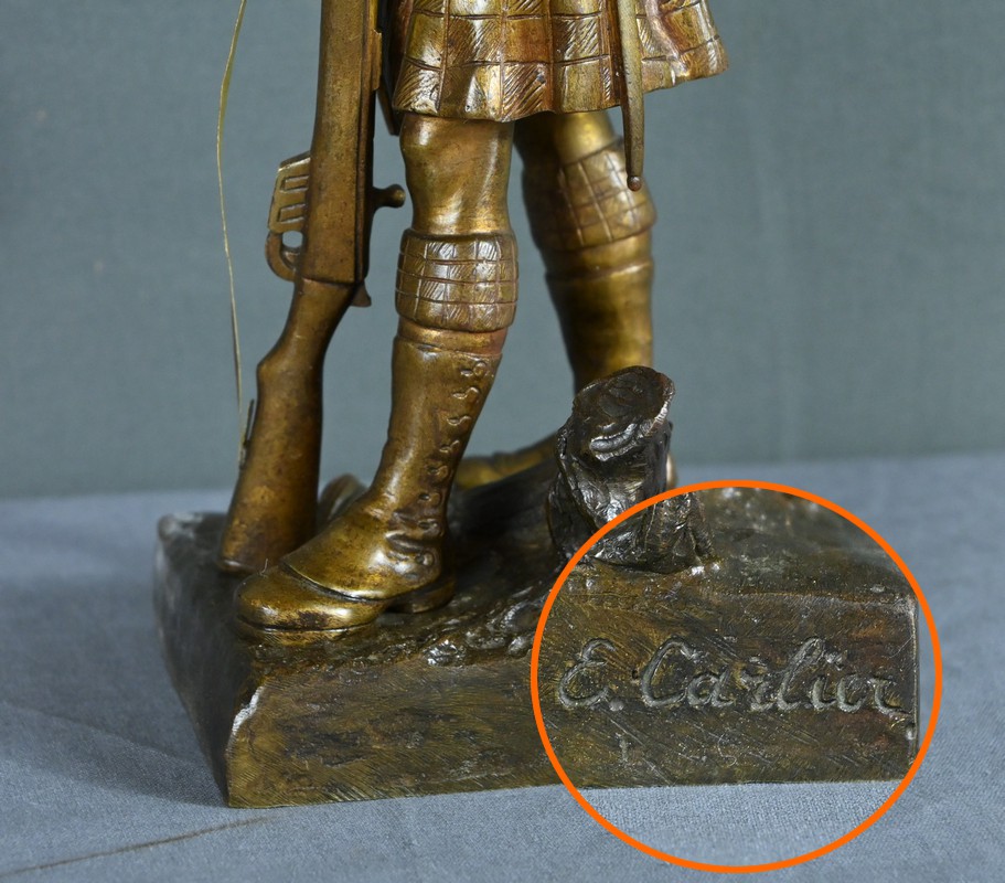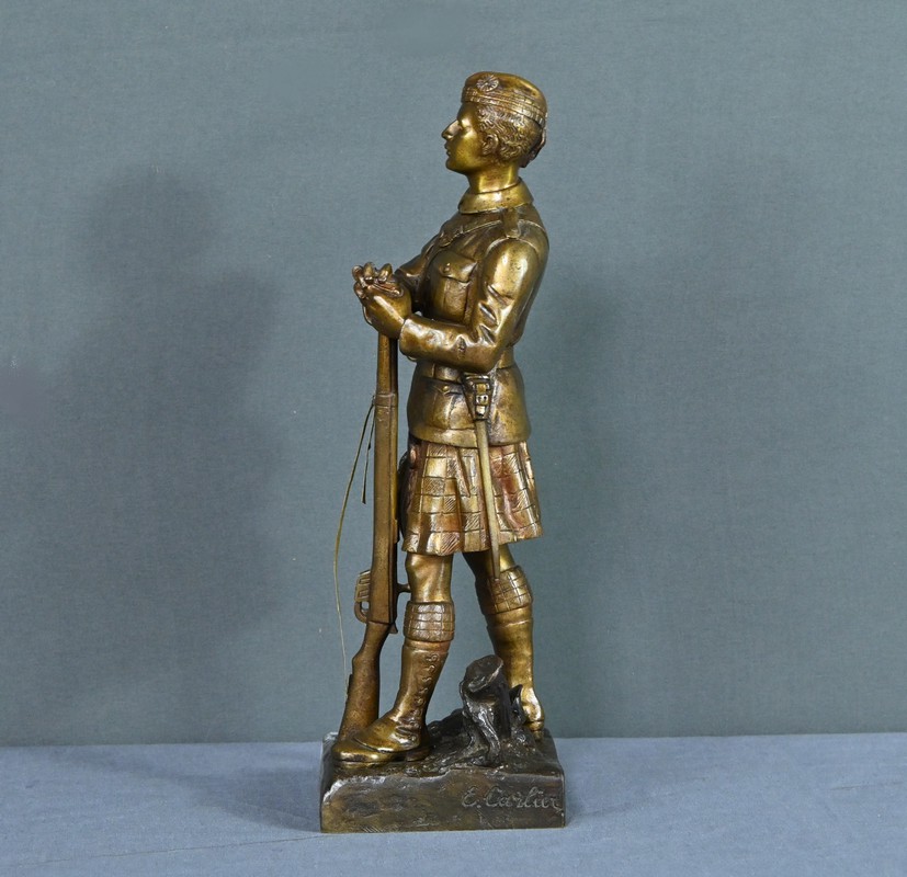 Bronze de Fantassin Ecossais, signé E. Carlier – Début XXe