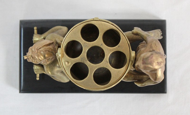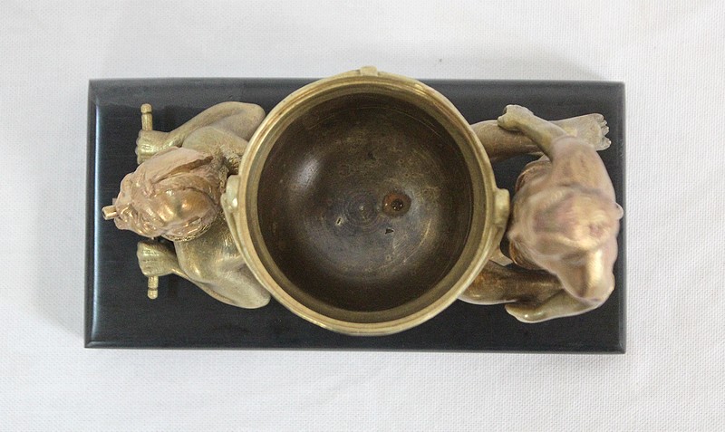 Vous serez étonné par ce Bronze aux détails soignés, qui pourra également être détourné de son but décoratif pour servir de petit vide-poche ou de porte-cigarillo.