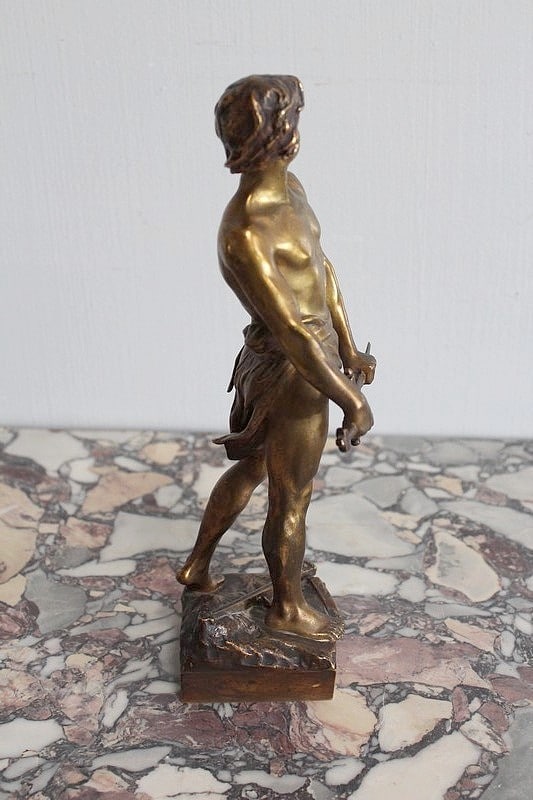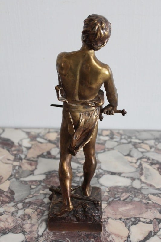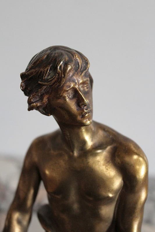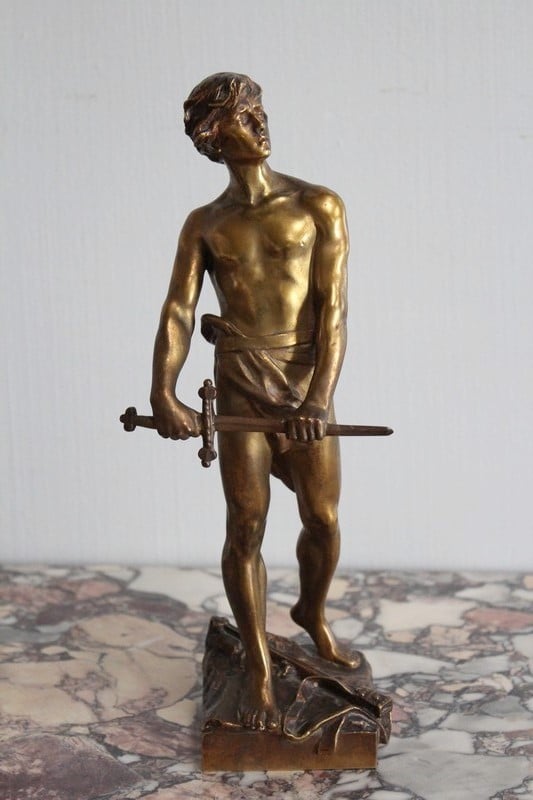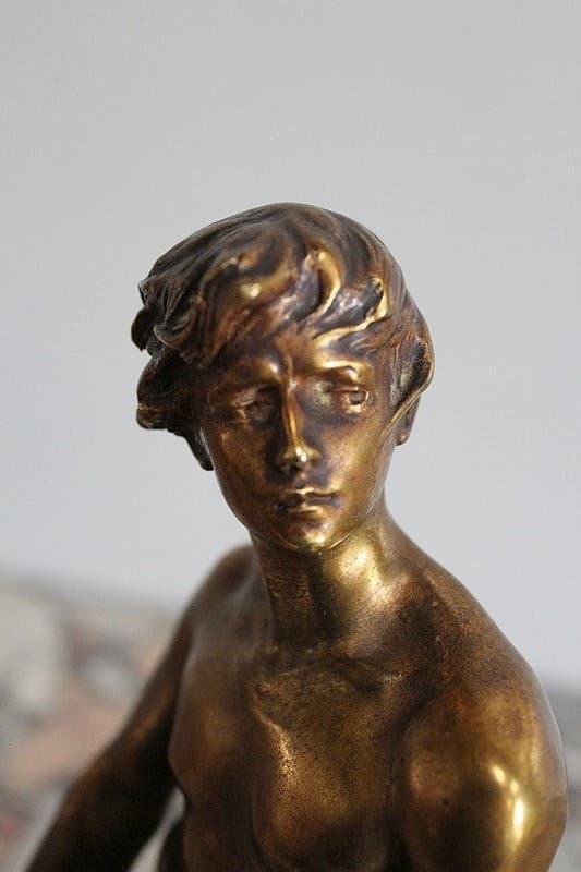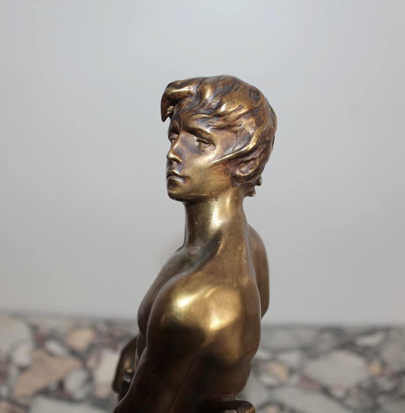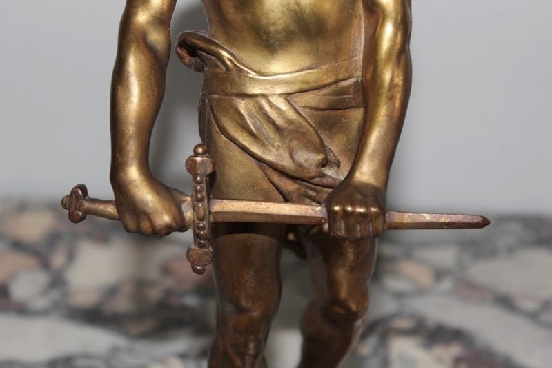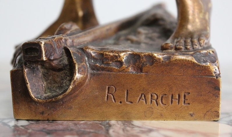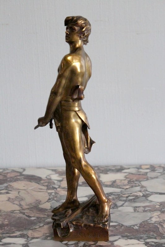 Bronze à patine dorée représentant un gladiateur. Il est signé ‘R. LARCHE’ sur le socle, coté droit. Raoul François LARCHE, sculpteur (1860/1912), a été médaillé d’or à l’exposition universelle de 1900.
