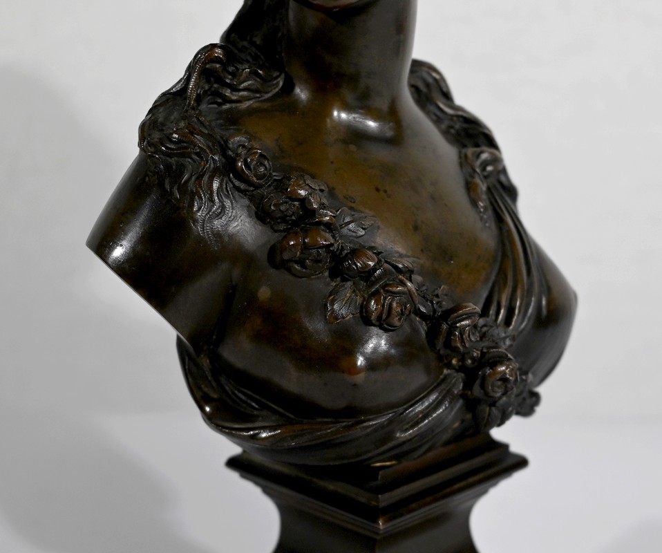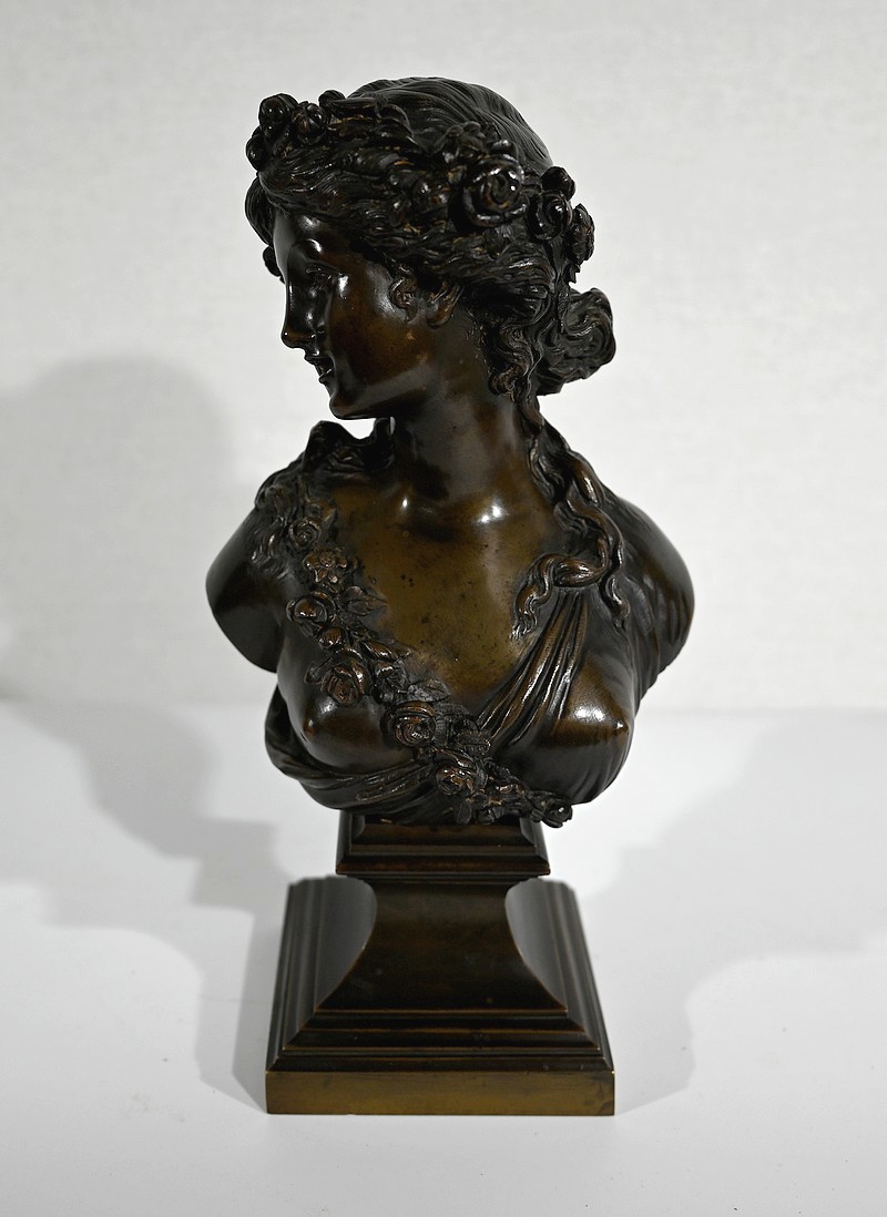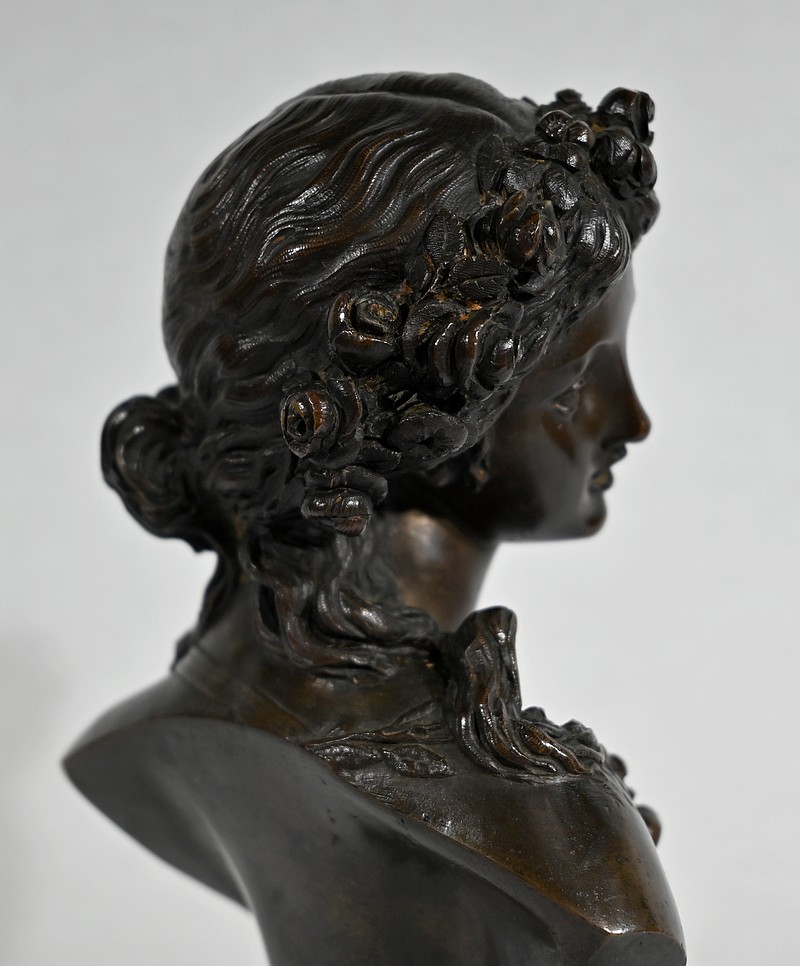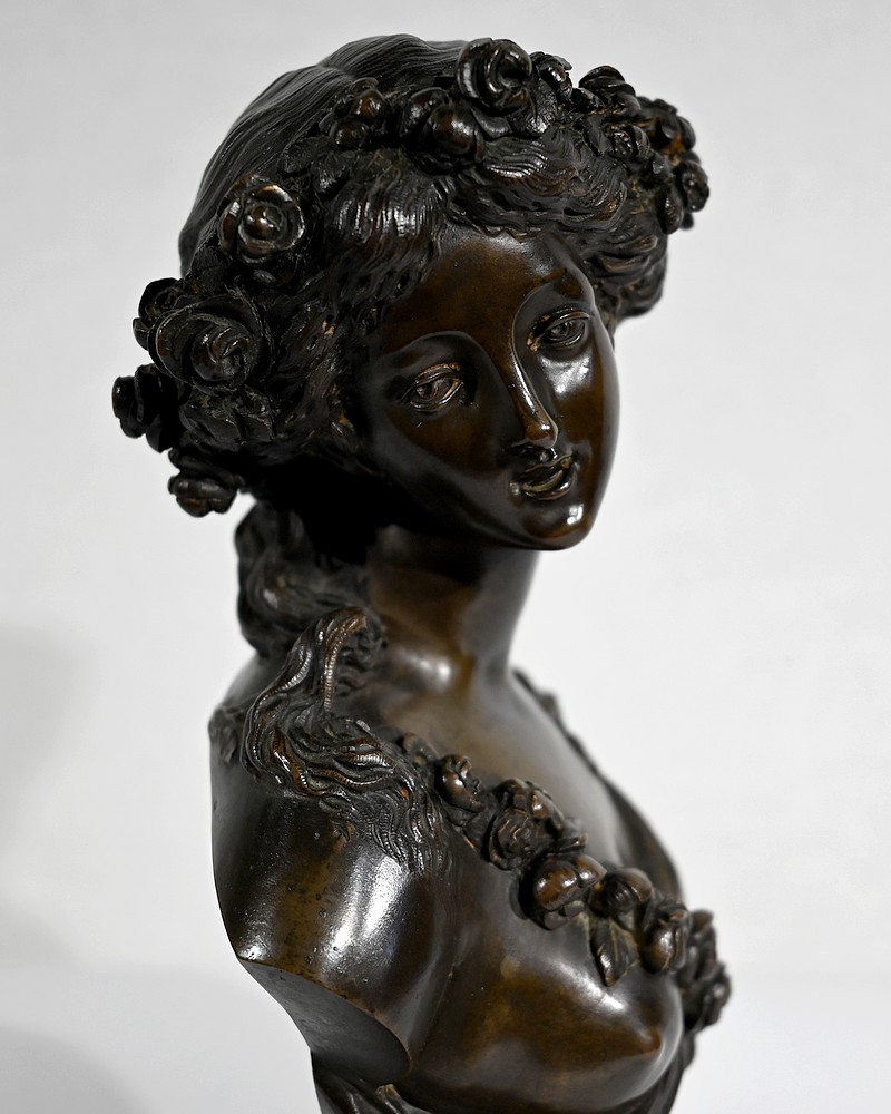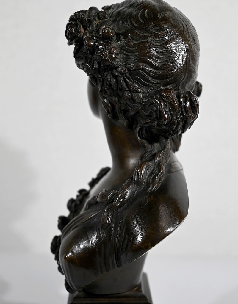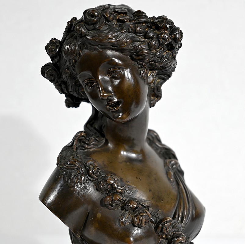 Gracieuse et délicate, la « jeune femme couronnée de fleurs » est une réalisation néo-classique ode à la féminité et à la beauté.