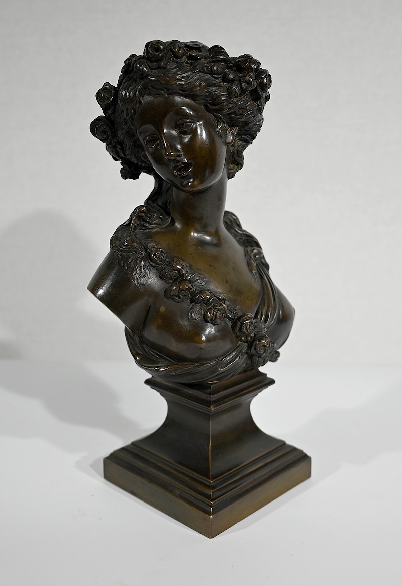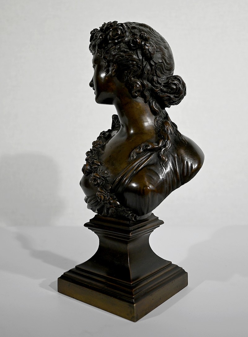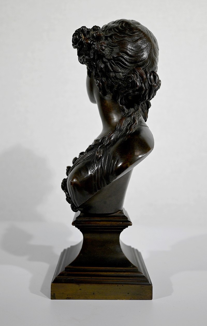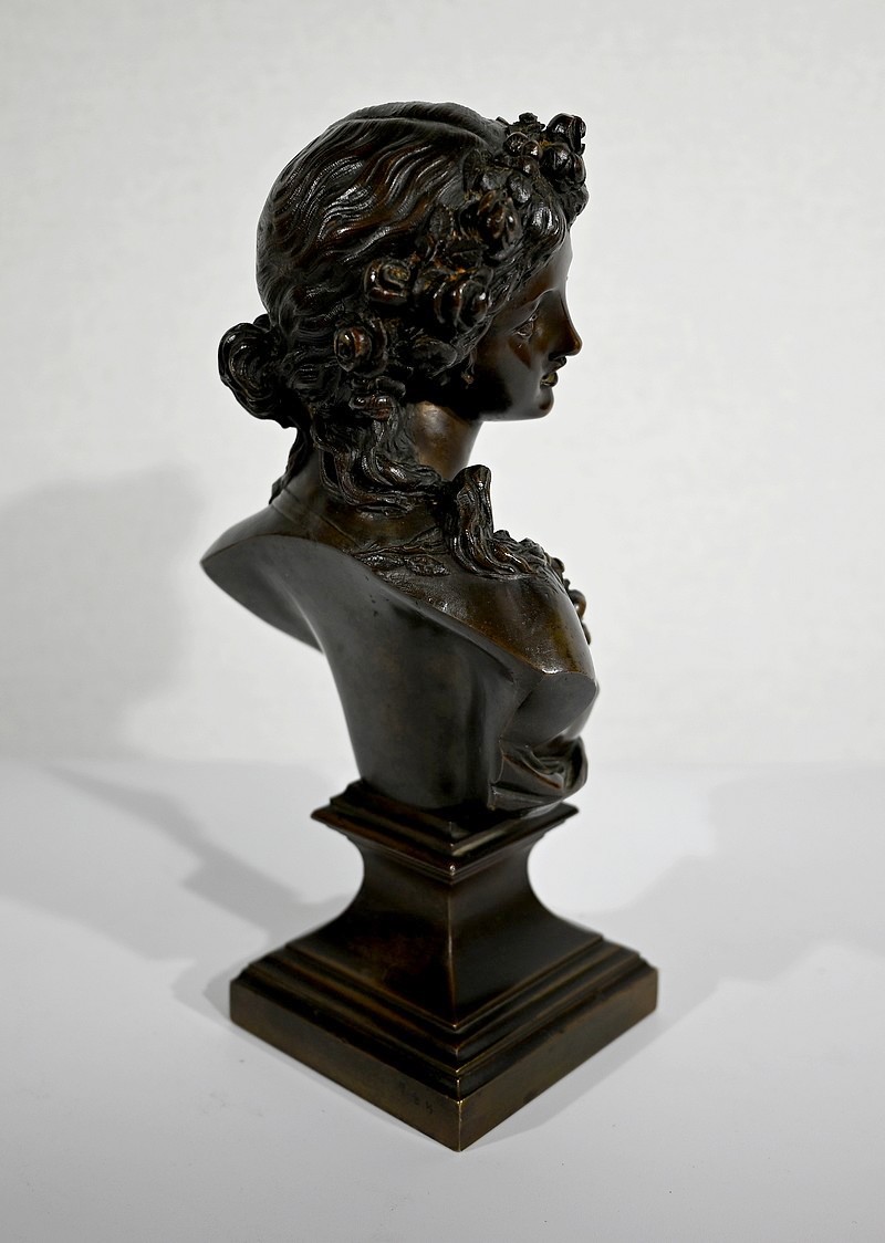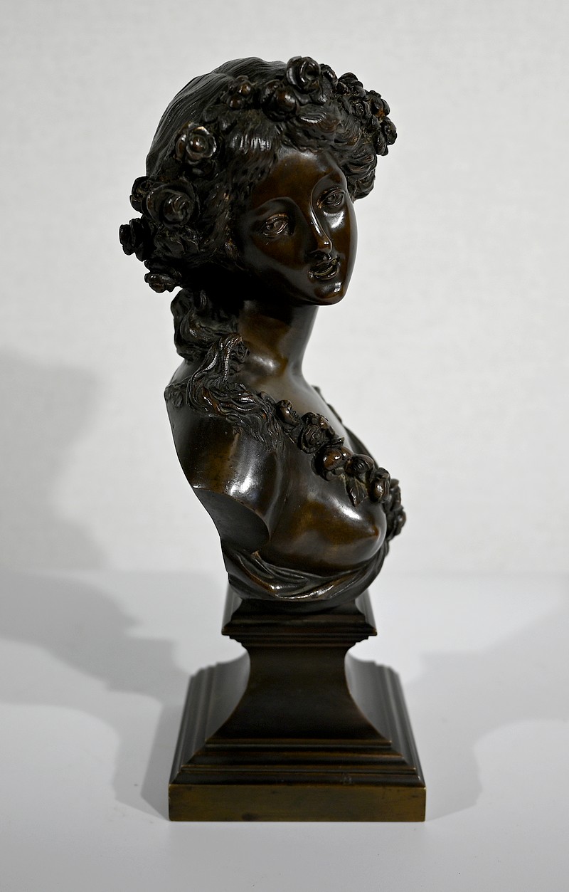 Gracieuse et délicate, la « jeune femme couronnée de fleurs » est une réalisation néo-classique ode à la féminité et à la beauté.