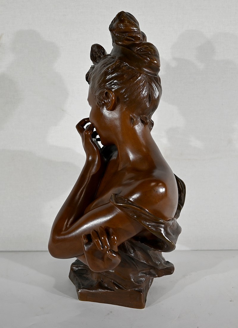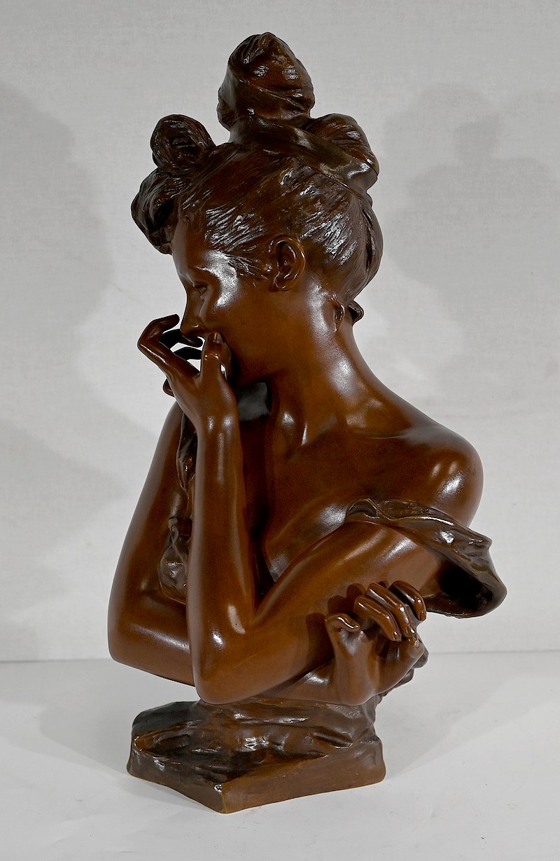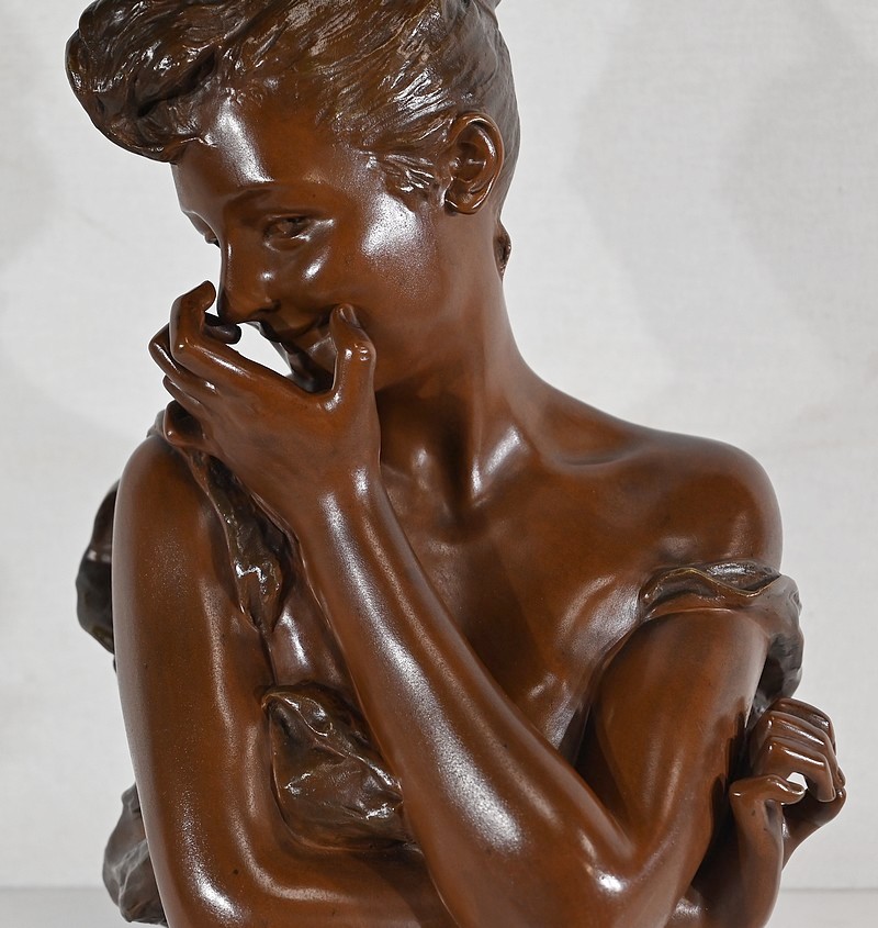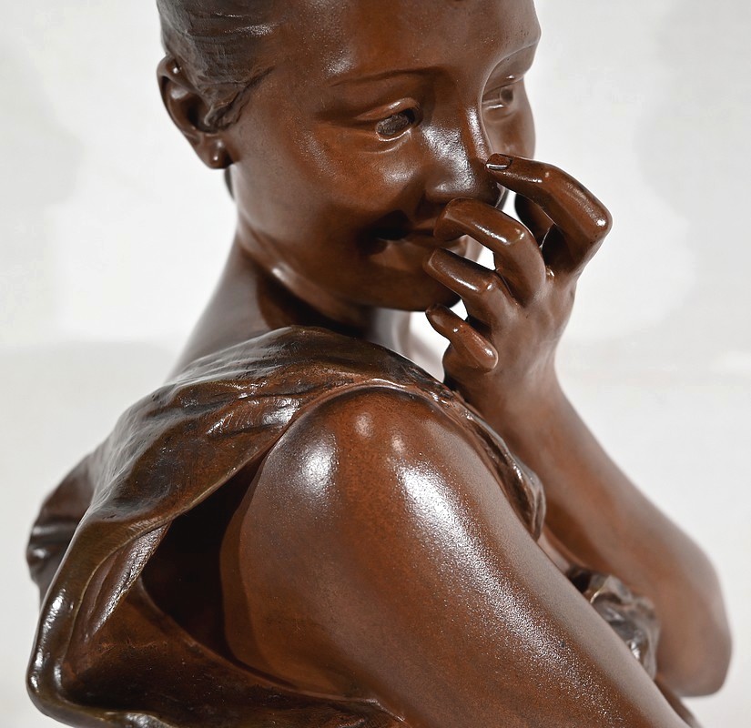 L’artiste réalise ici une œuvre touchante figurant le buste d’une jeune Parisienne souriante et malicieuse.