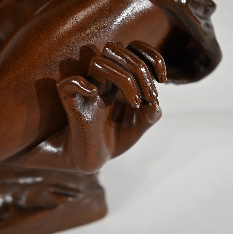 Sculpture en bronze à deux patines, signée Georges Van Der Straeten (1856 – 1941) et portant le cachet de la société des Bronzes de Paris.