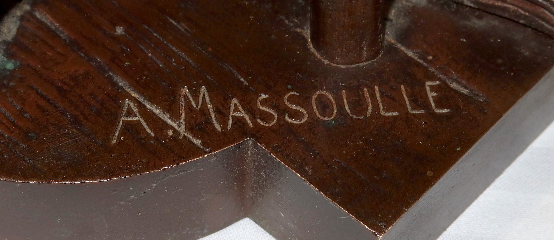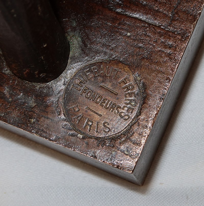 Belle épreuve en bronze à patine brune signée André Massoulle (1851-1901) et portant le cachet du fondeur Thiebaut Frères Paris.