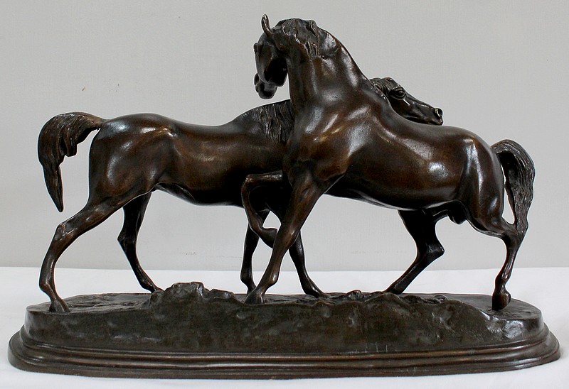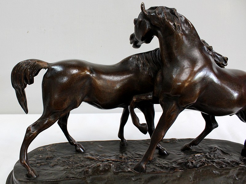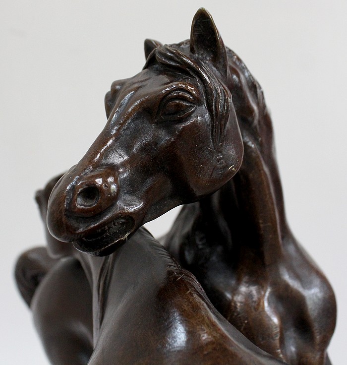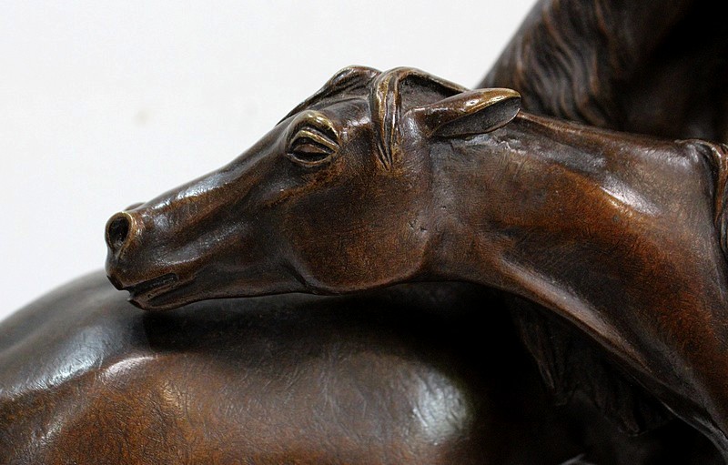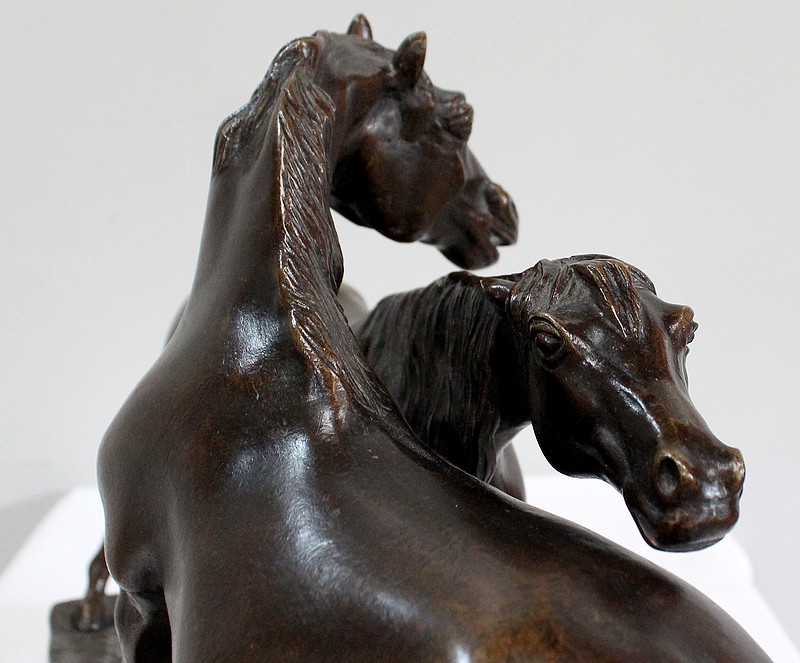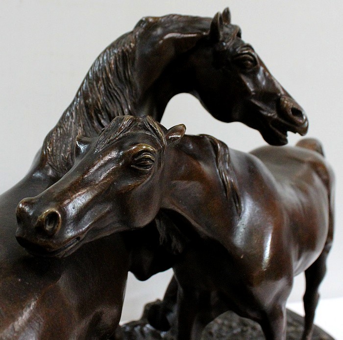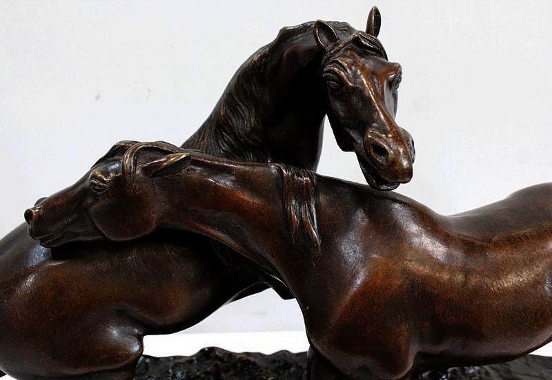 Sculptés finement, les équidés semblent figés dans le temps dans une Étreinte éternelle.