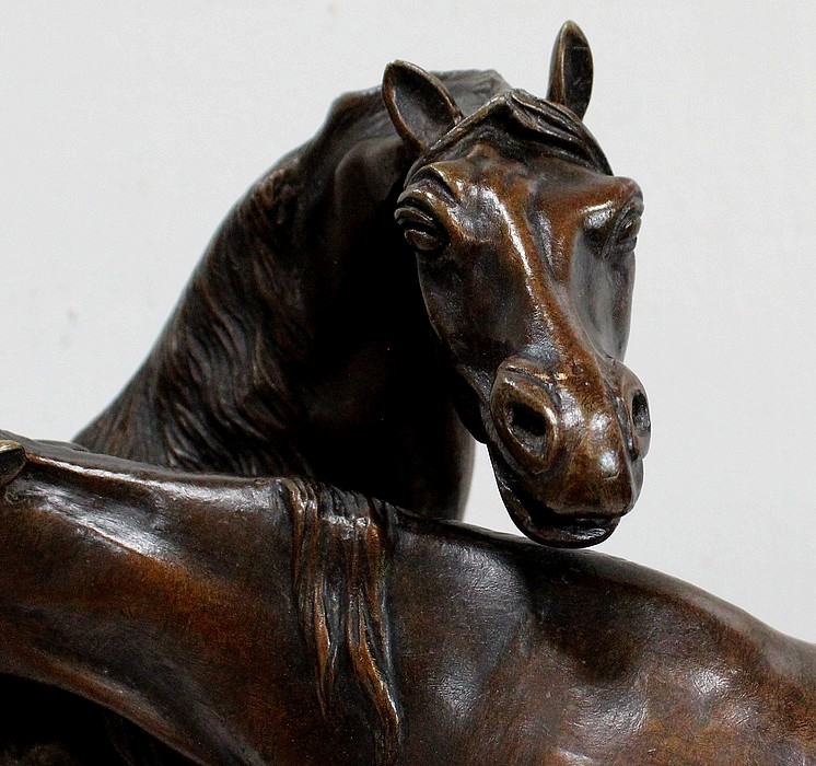 Splendide Bronze à Patine Brune, cette Épreuve ancienne de Pierre-Jules Mêne (1810-1879) séduira tout amateur de Chevaux Arabes.