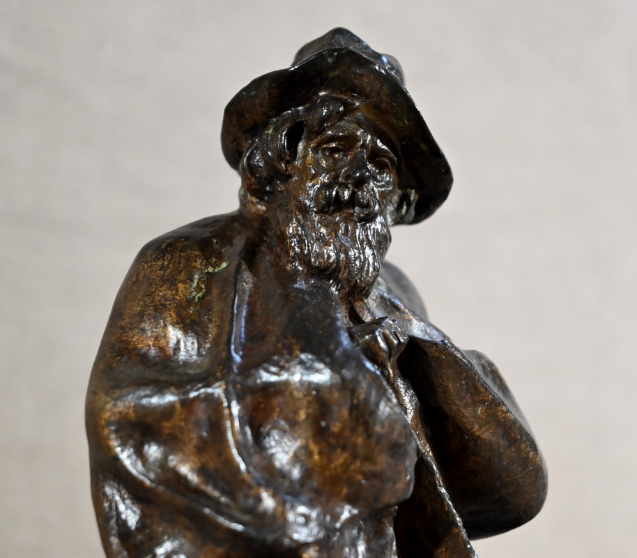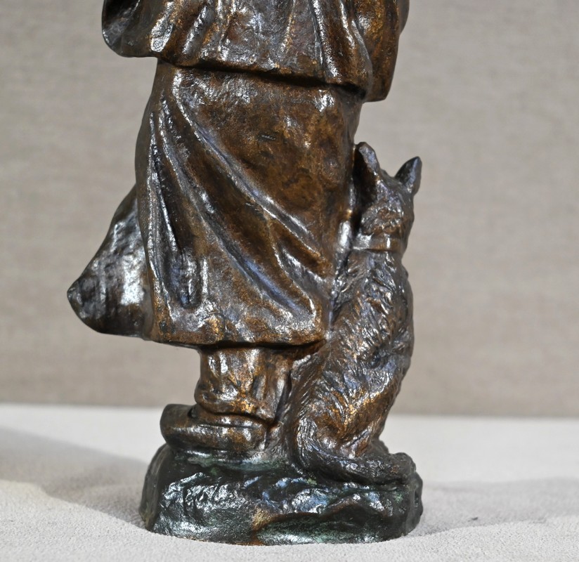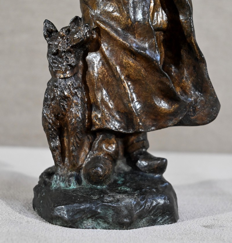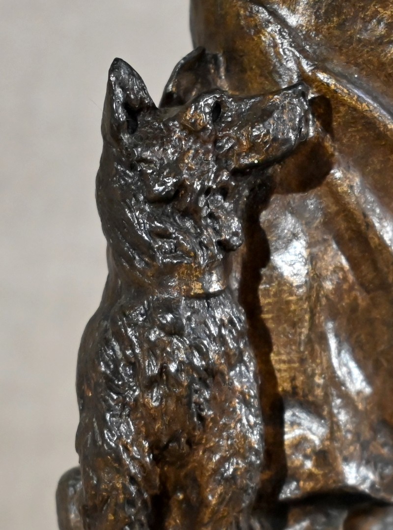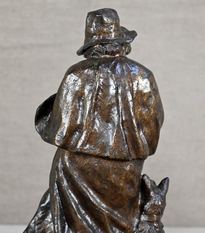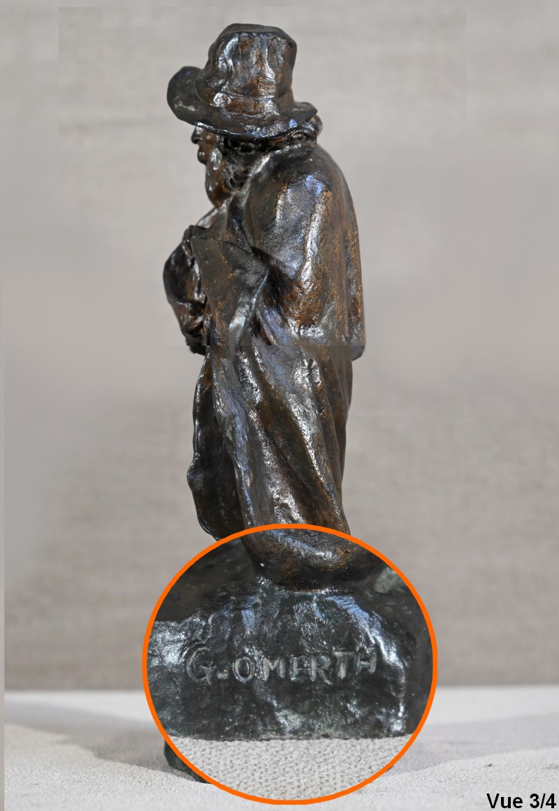 Bronze à patine brune signé sur la terrasse par le sculpteur français Georges Omerth. Élève du sculpteur Albert-Ernest Carrier-Belleuse, Omerth a exposé régulièrement à la société des artistes français entre 1895 et 1925.