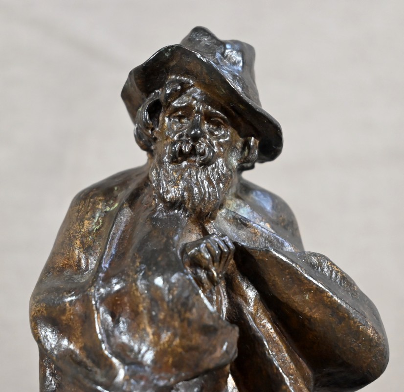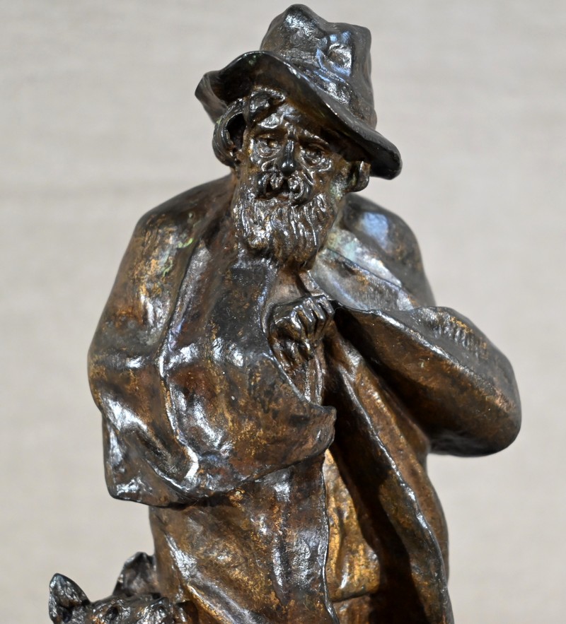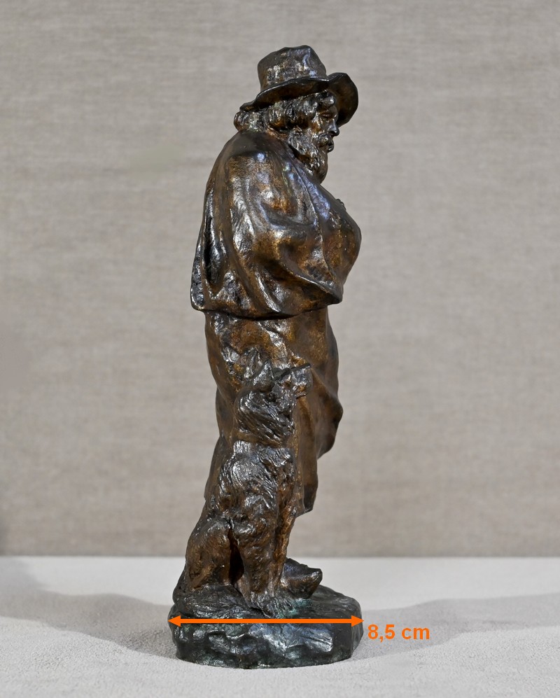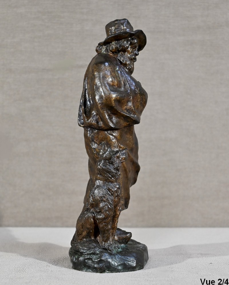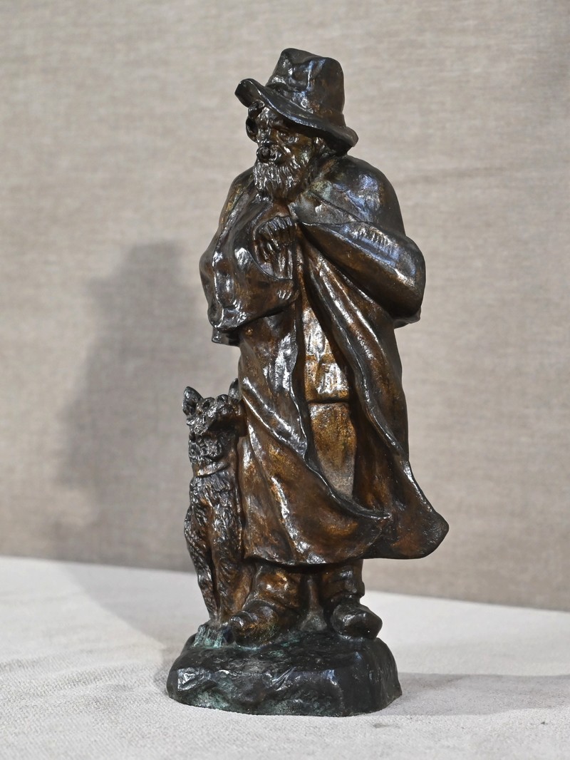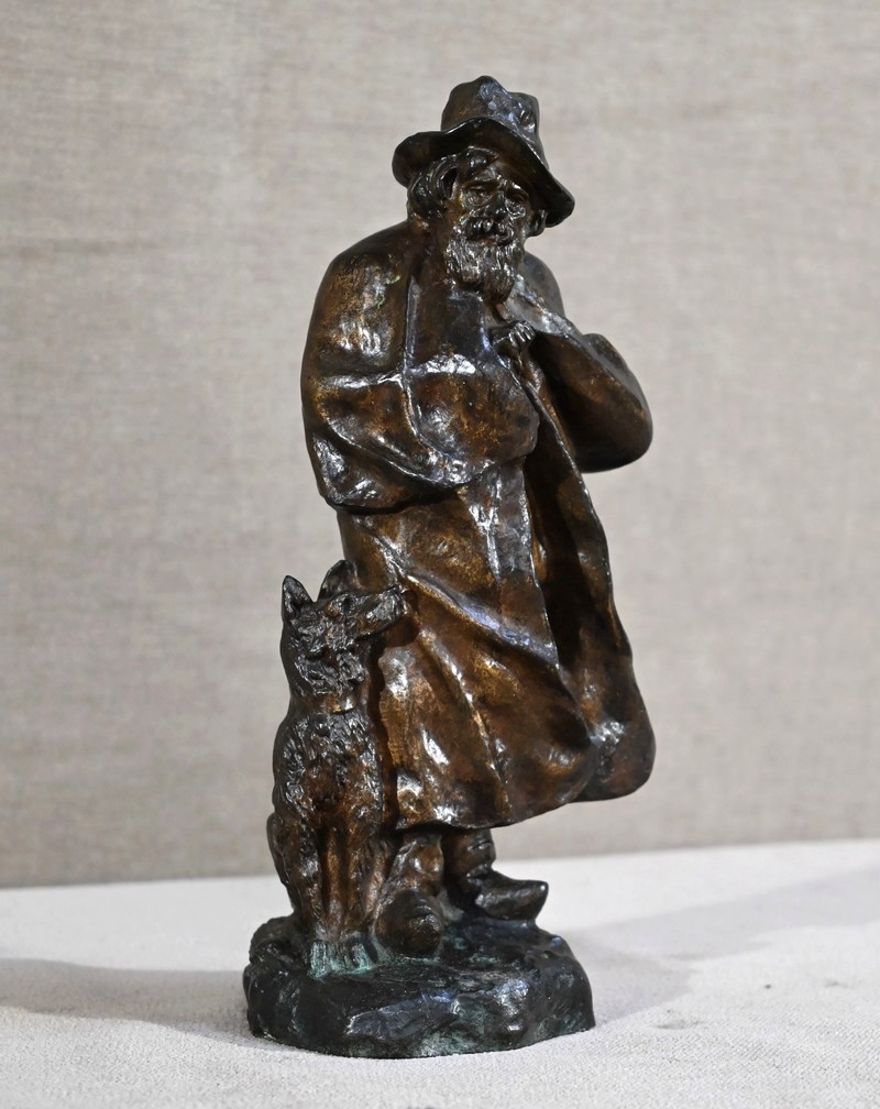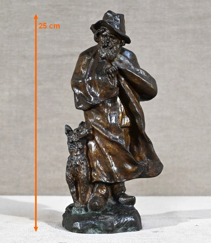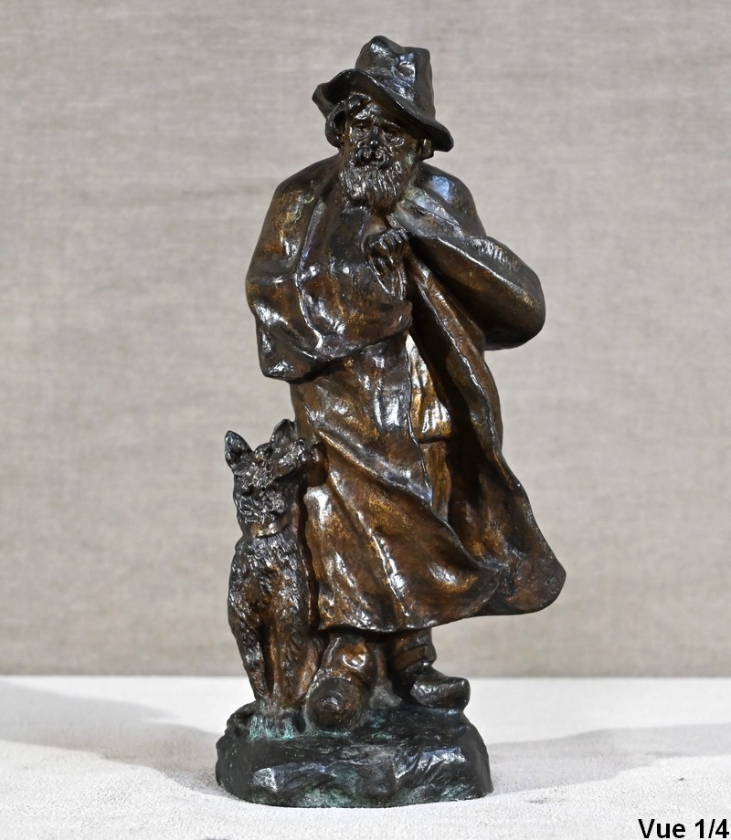 Cette épreuve figure un berger, à longue barbe, le visage aux traits marqués par le temps. Le vieil homme au chapeau, chaussé de sabots, tente de se réchauffer sous sa longue cape aux prises avec le vent. Le chien à côtés fixe son maître avec un regard rempli de bienveillance comme pour partager la peine de ce vieux berger entouré par la solitude.