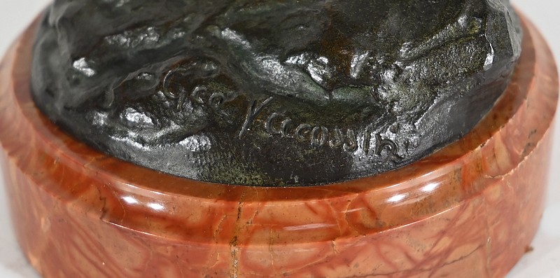 Georges Lucien Vacossin (1870-1942) est un graveur et sculpteur animalier de renom. Élève de Lemaire à l’École des Beaux-Arts de Paris, il expose au Salon des Artistes français de 1902 à 1937 et en sera sociétaire en 1905. Il y recevra honneurs et médailles.