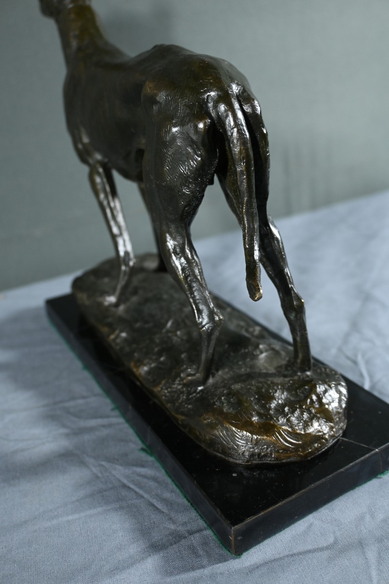 Frémiet, reconnu pour son excellence dans l’art animalier, a su capturer la grâce et l’élégance de cet animal noble.