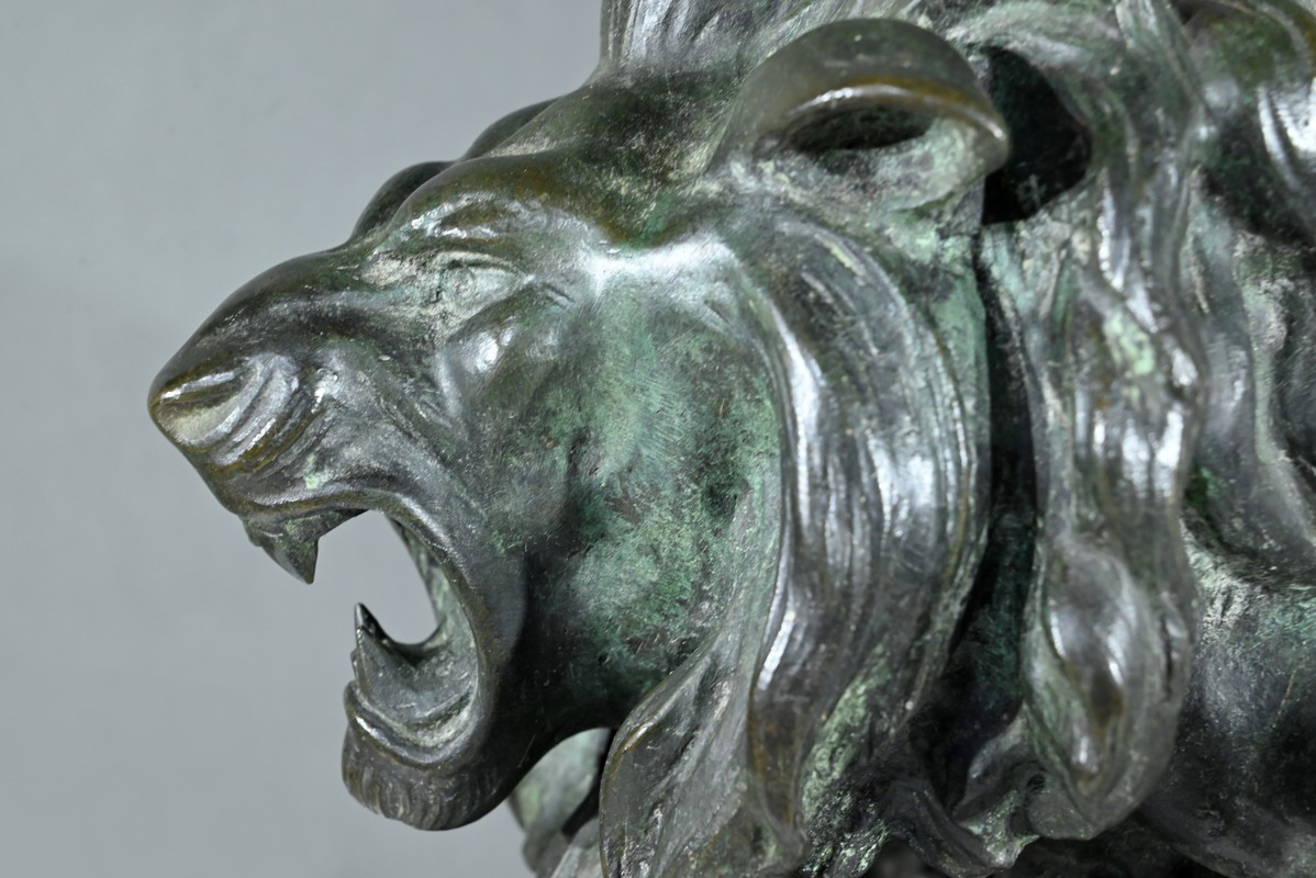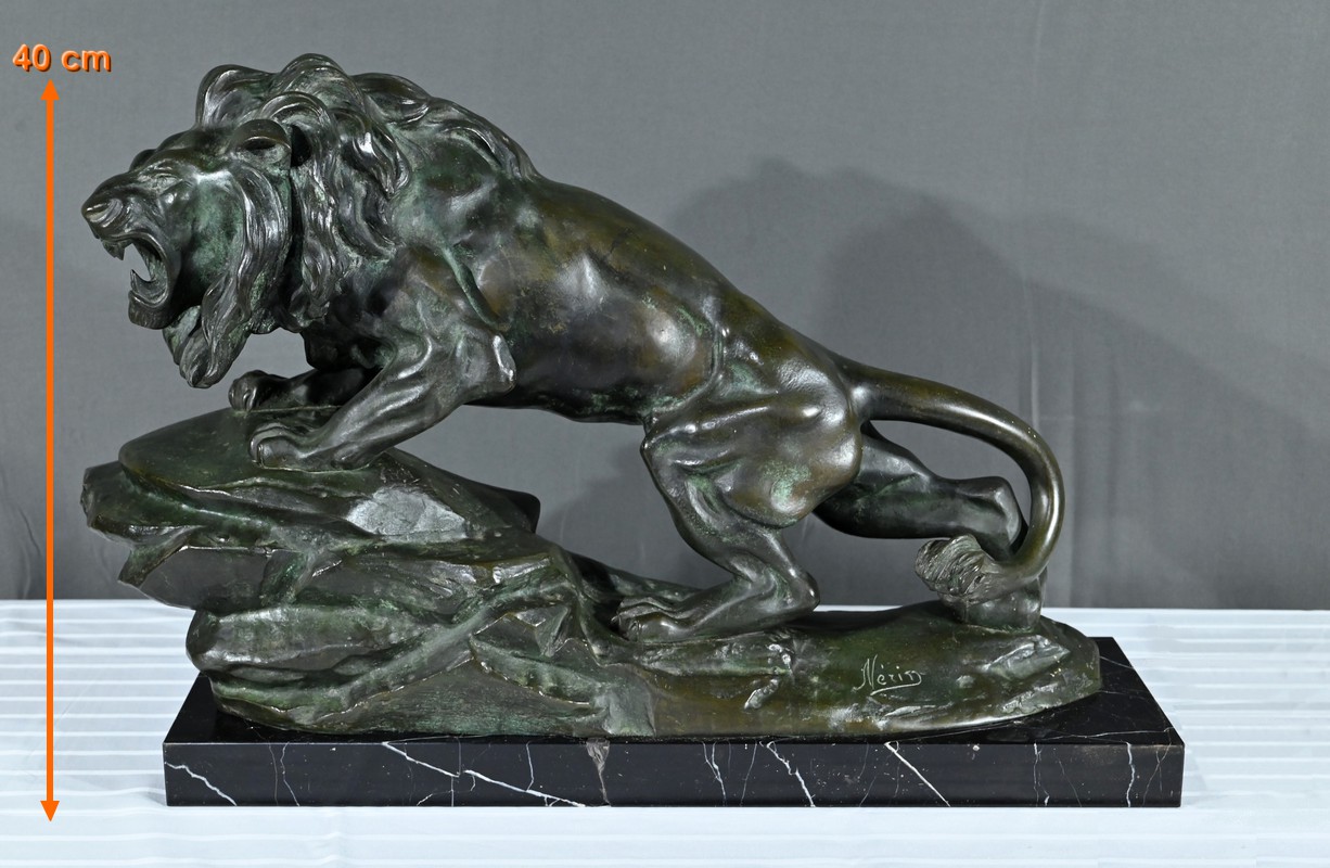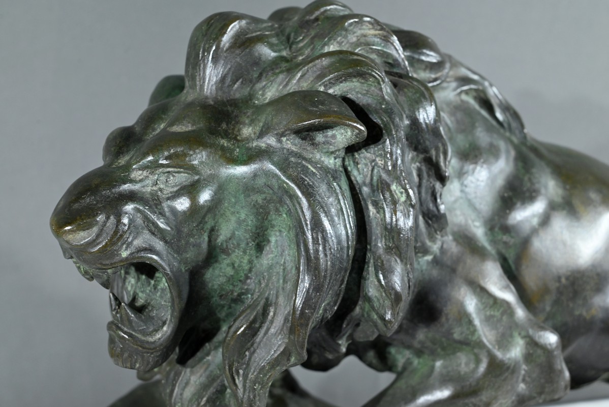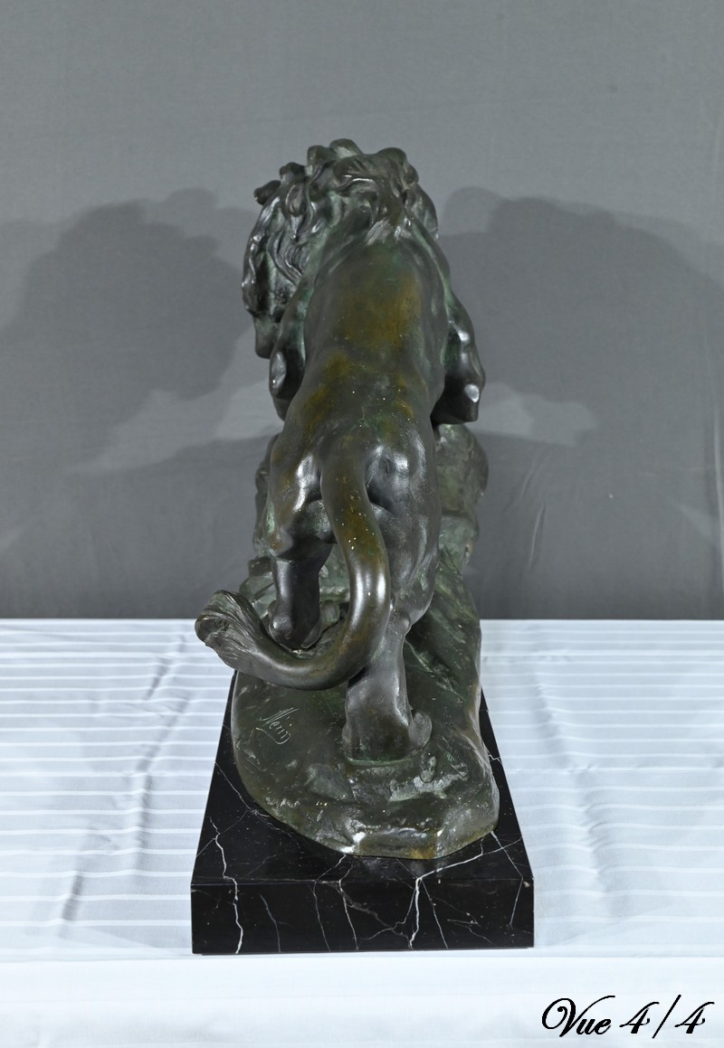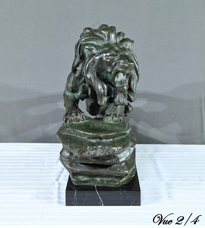 Cette sculpture se distingue par la qualité de sa réalisation, capturant l’essence du mouvement et de la force du lion, ainsi que par la signature de l’artiste, qui ajoute de la valeur à la pièce.