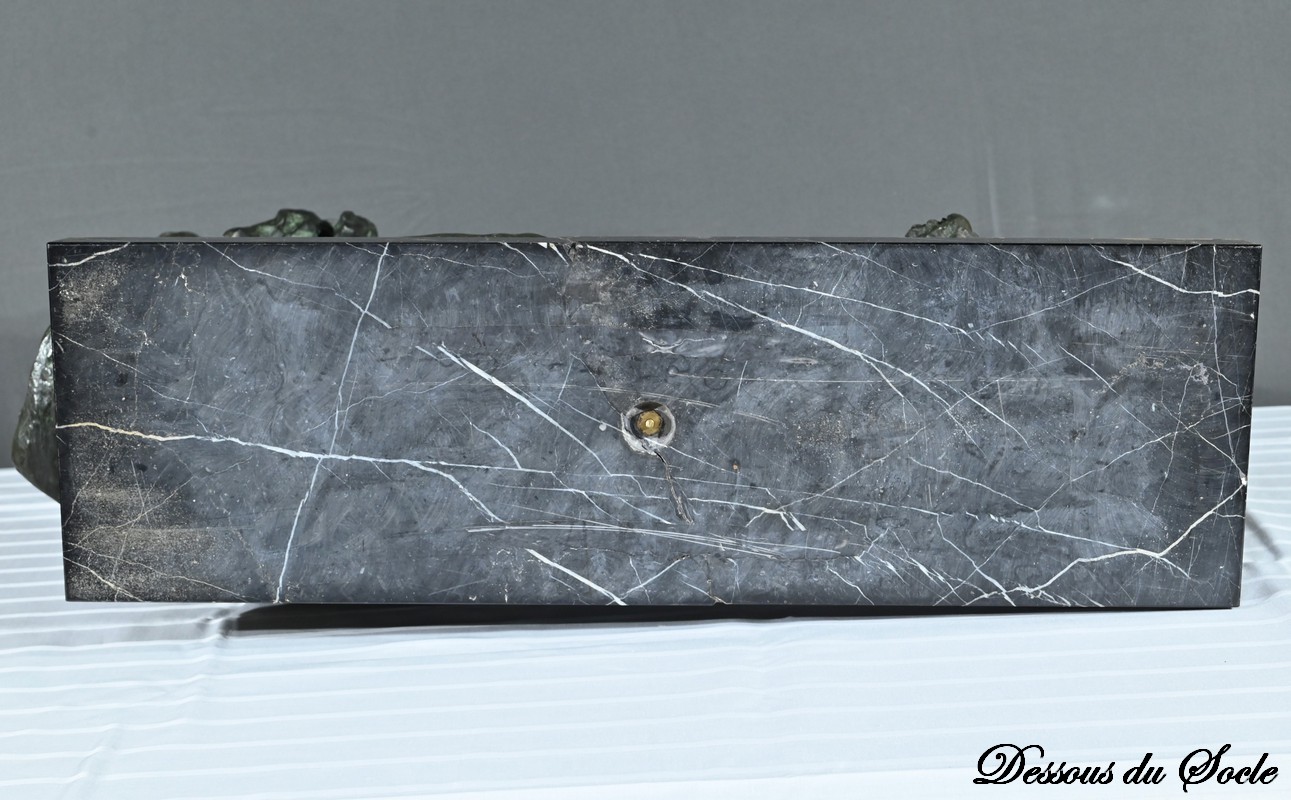 L’ensemble repose sur un socle de marbre Noir Cihigue.