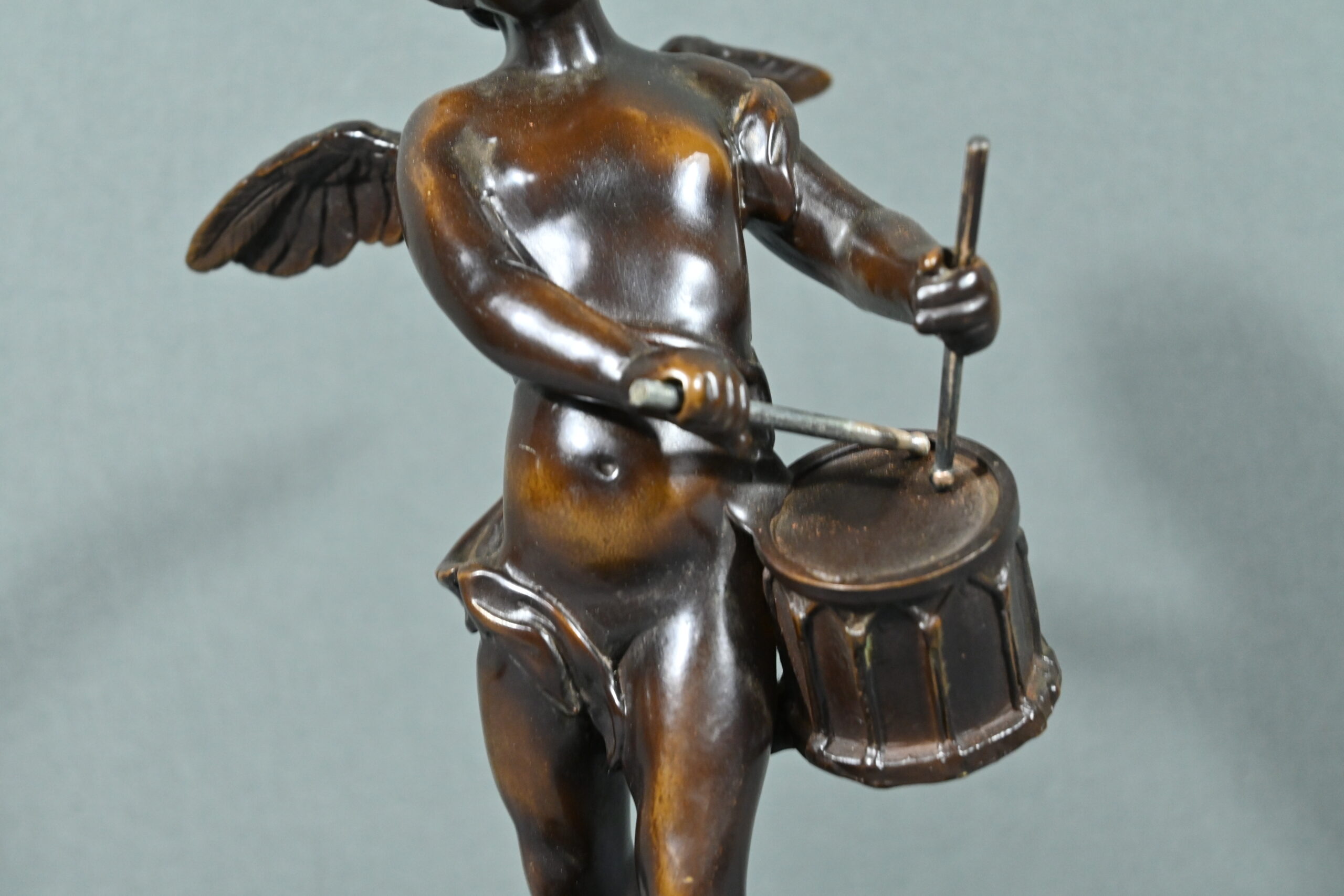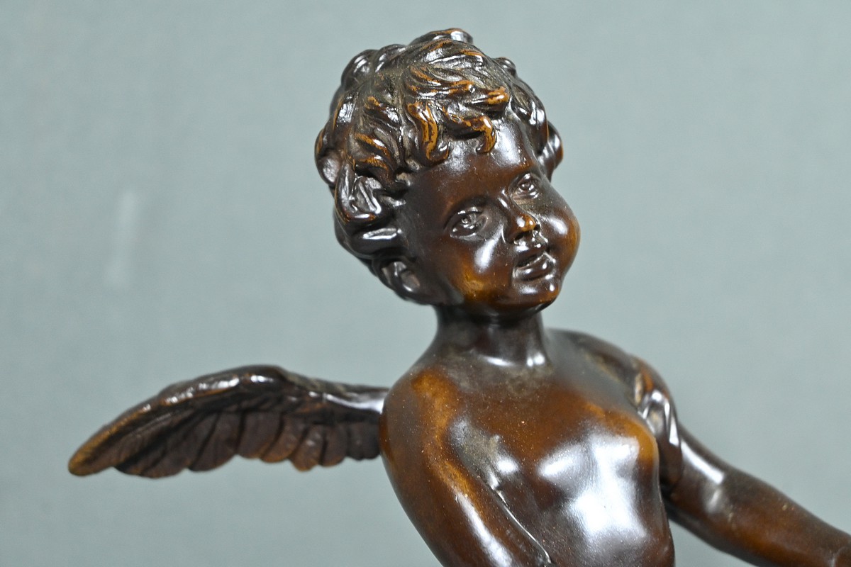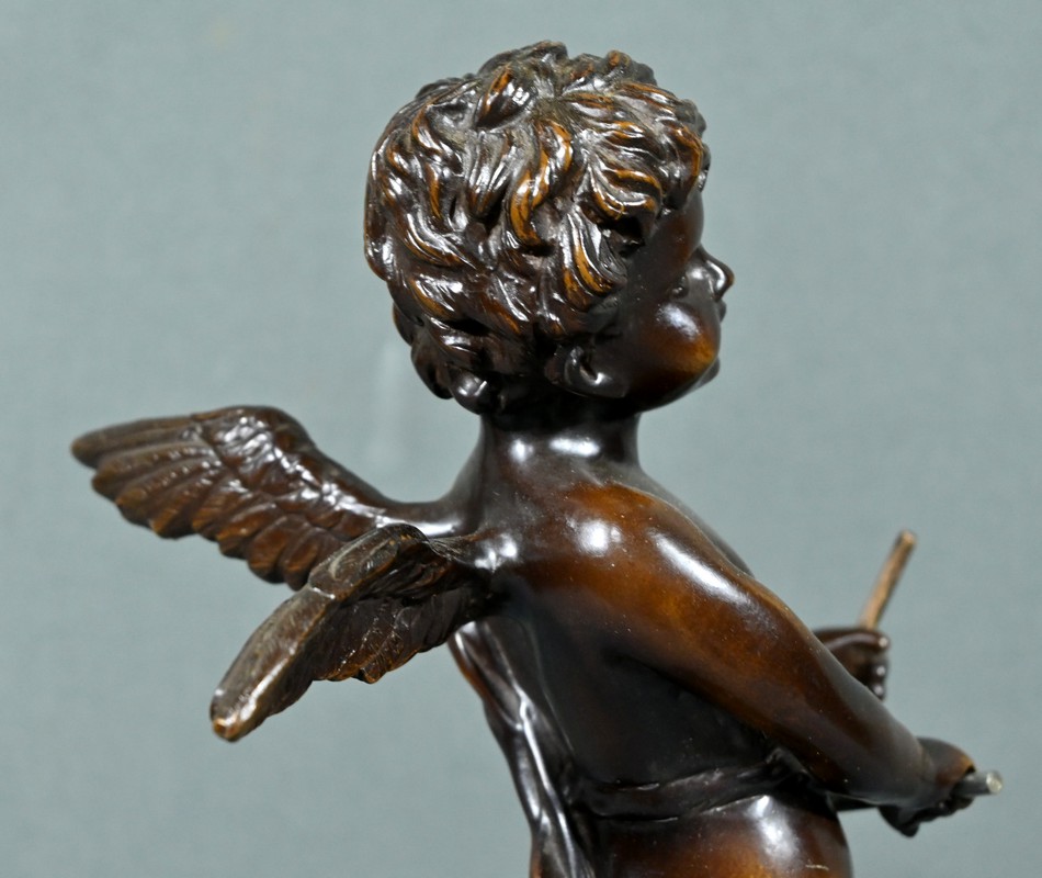 Dans cette œuvre, chaque détail compte : les boucles délicates des cheveux, l’expression malicieuse sur le visage de ce chérubin, le drapé fluide de sa tunique qui semble flotter au rythme de la musique.