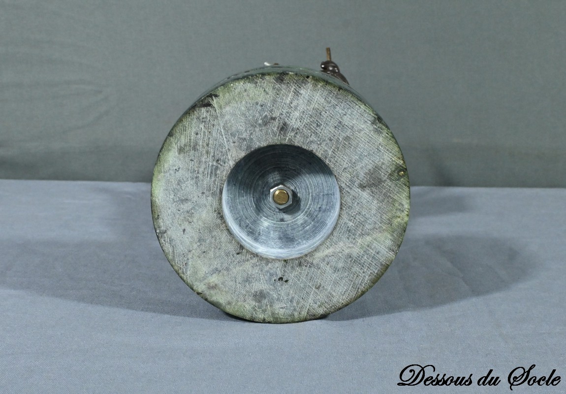 La sculpture repose sur un socle circulaire en marbre maurin, qui ajoute une touche d’élégance et de stabilité à l’œuvre.