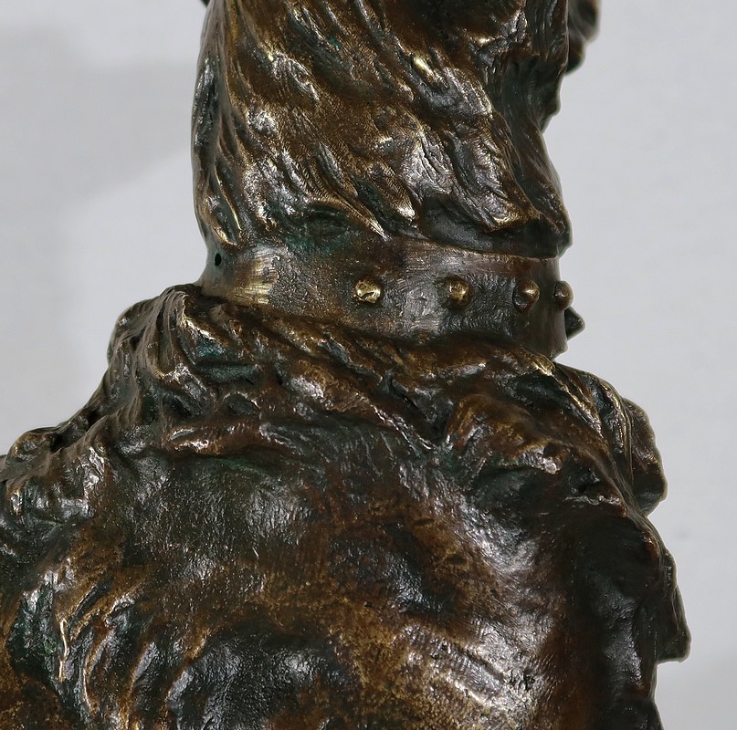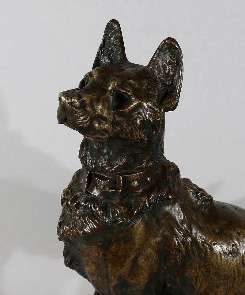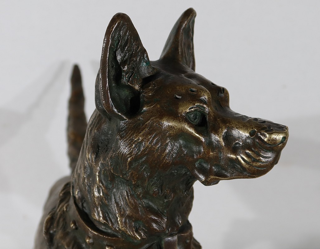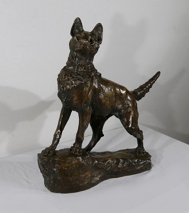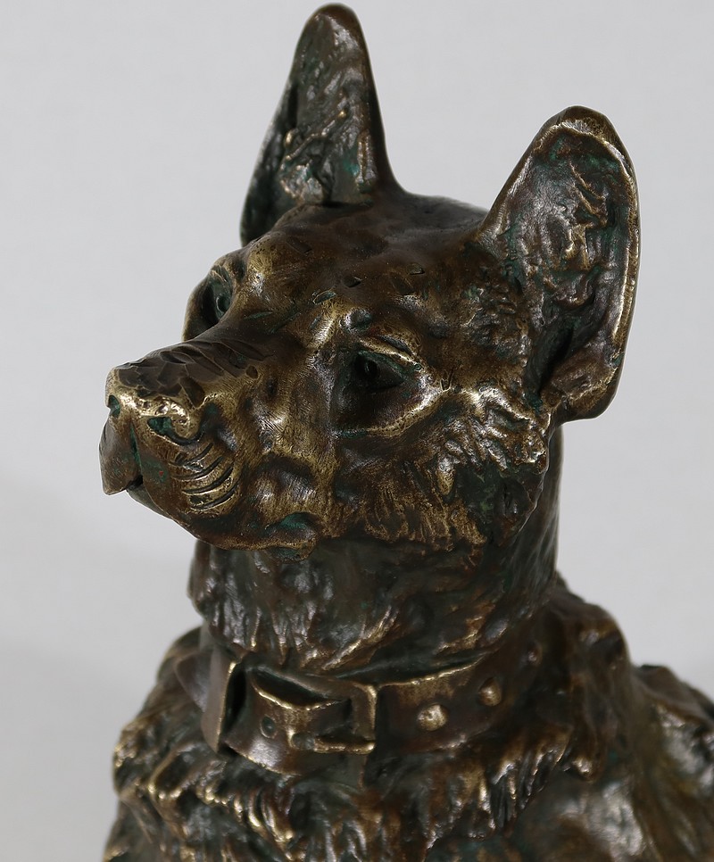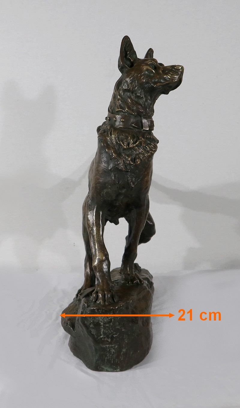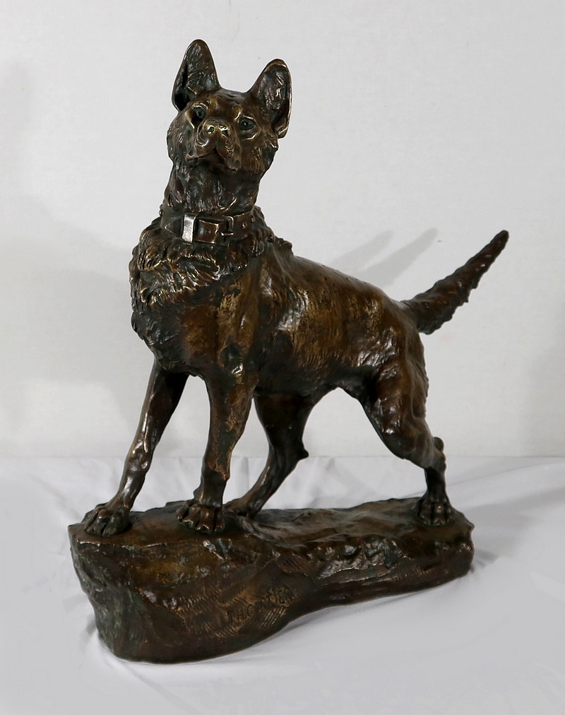 Grande et belle épreuve en bronze à patine mordorée signée Thomas François Cartier (1879 – 1943), sculpteur animalier français connu pour sa passion des chiens qu’il représenta à de nombreuses reprises.