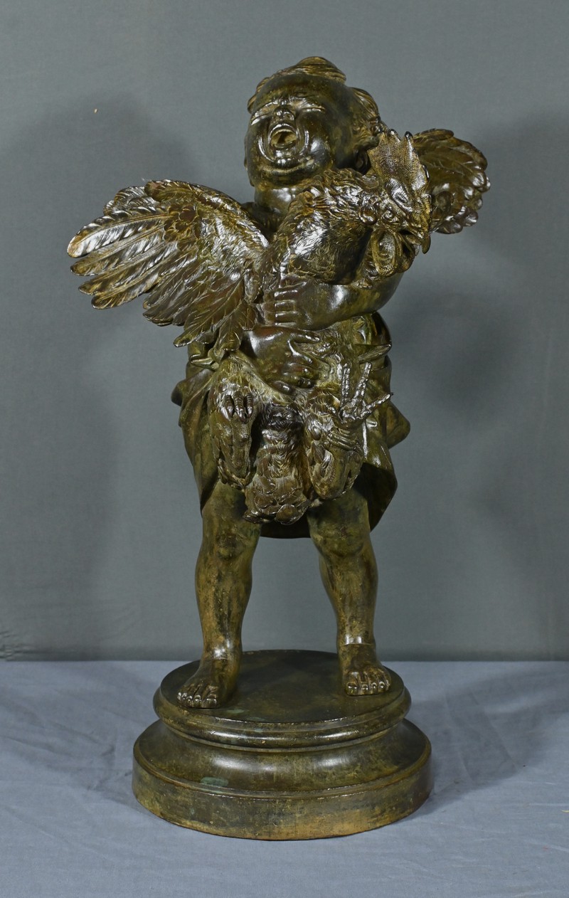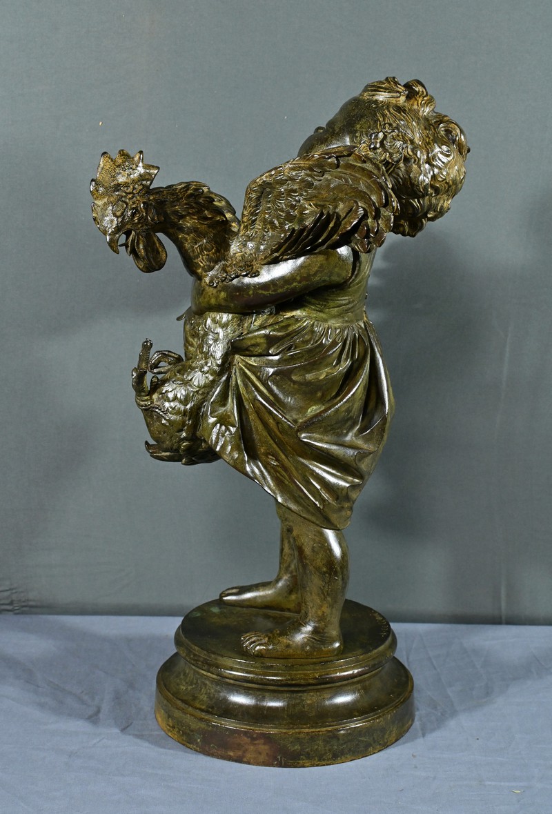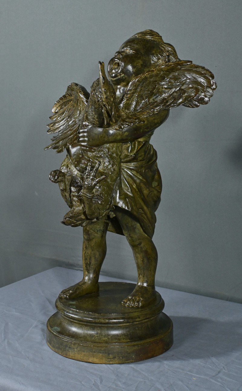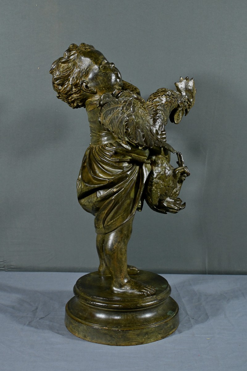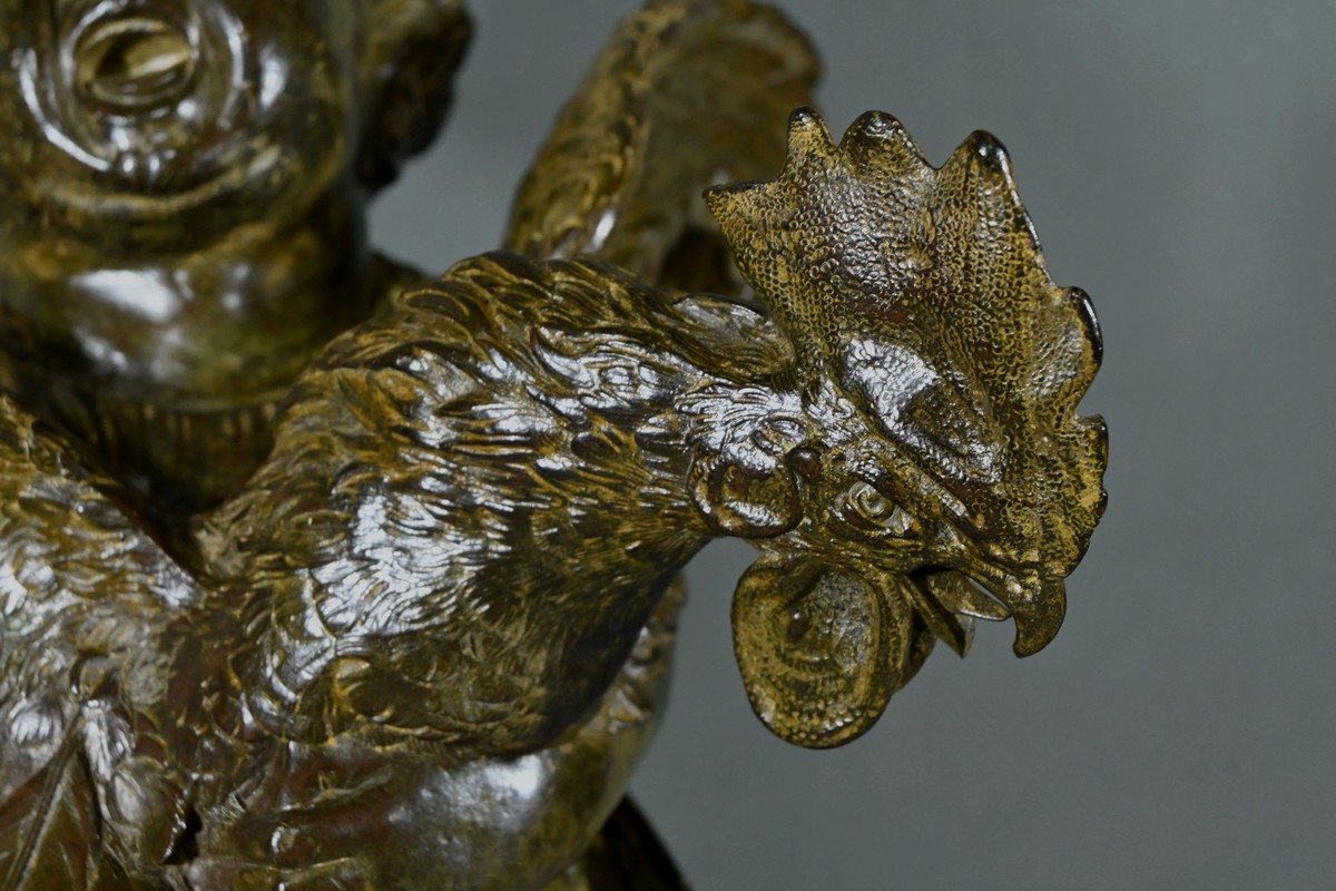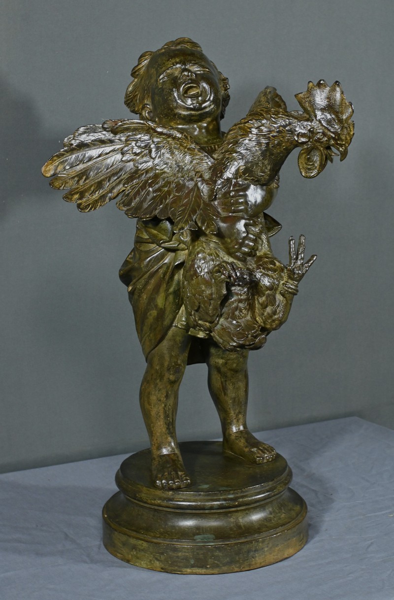 Important Bronze « L’Enfant au Coq », d’après A. Cecioni – Fin XIXe
