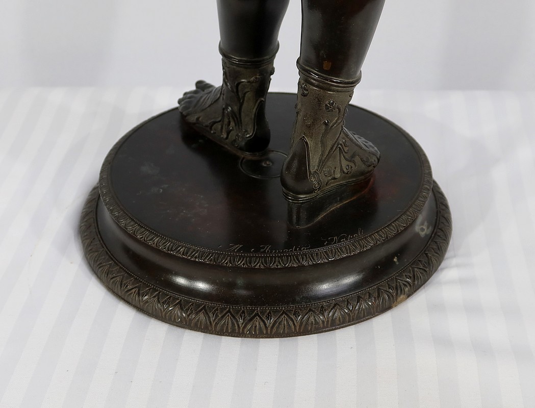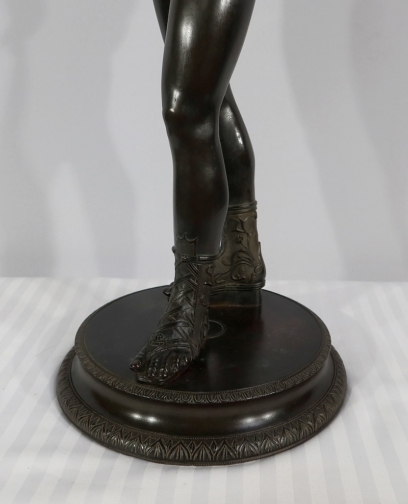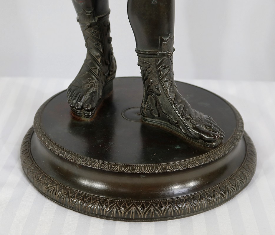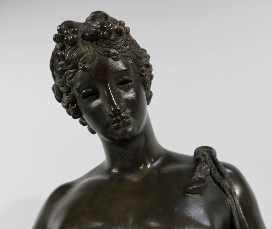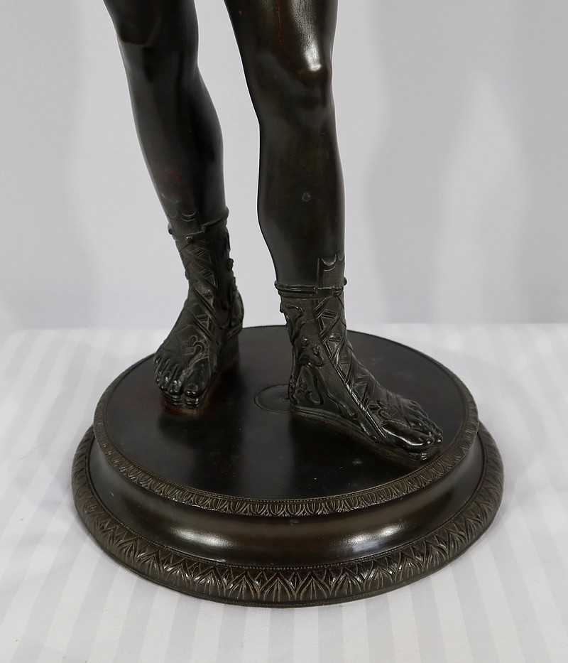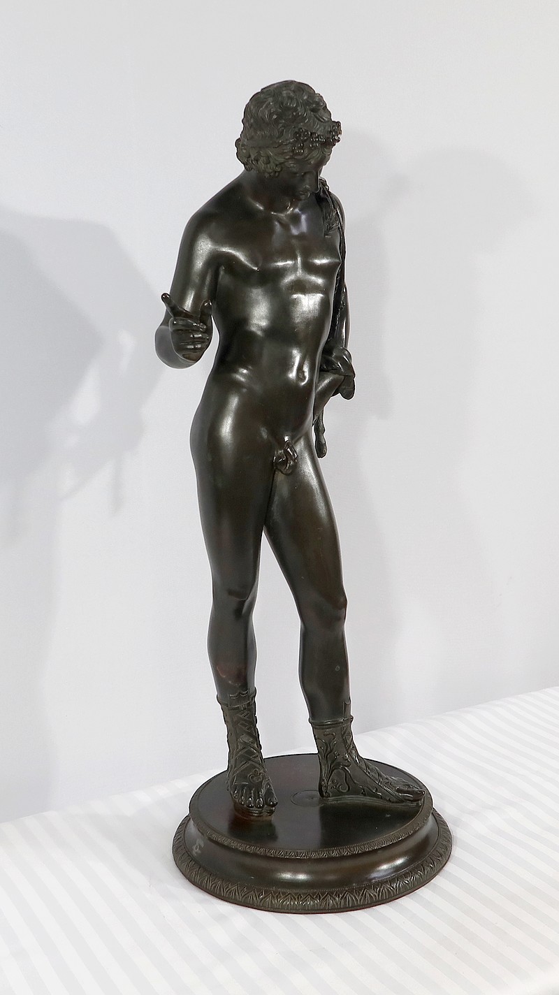 Grande sculpture en bronze patiné figurant Narcisse nu de Michele Amodio, d’après l’original antique découvert en 1862 à Pompéi dans la Maison de Narcisse et actuellement conservée à Naples.
