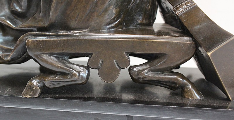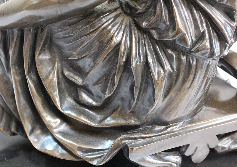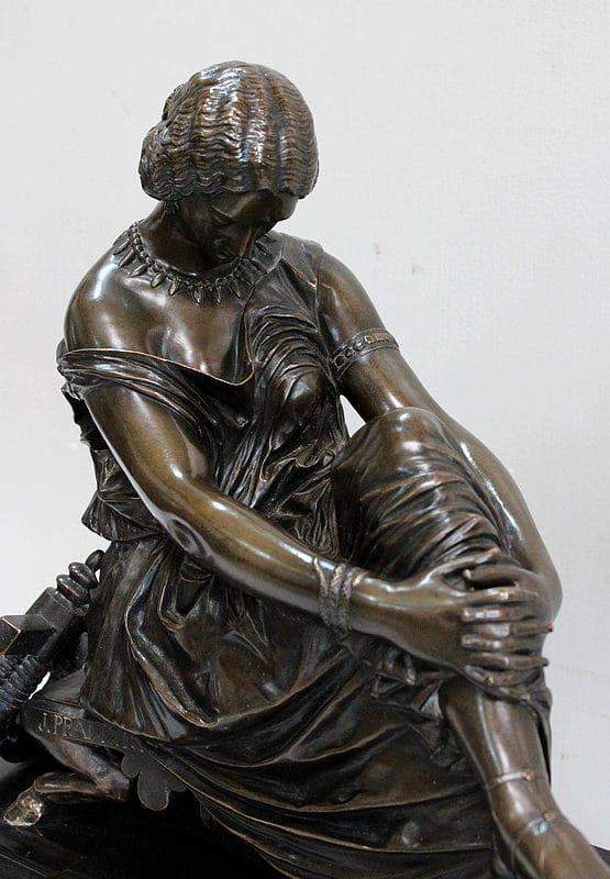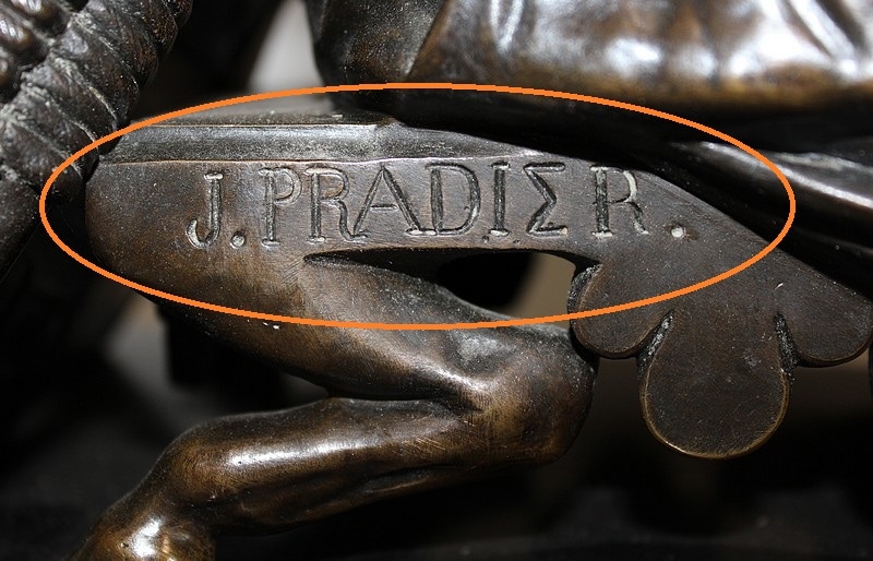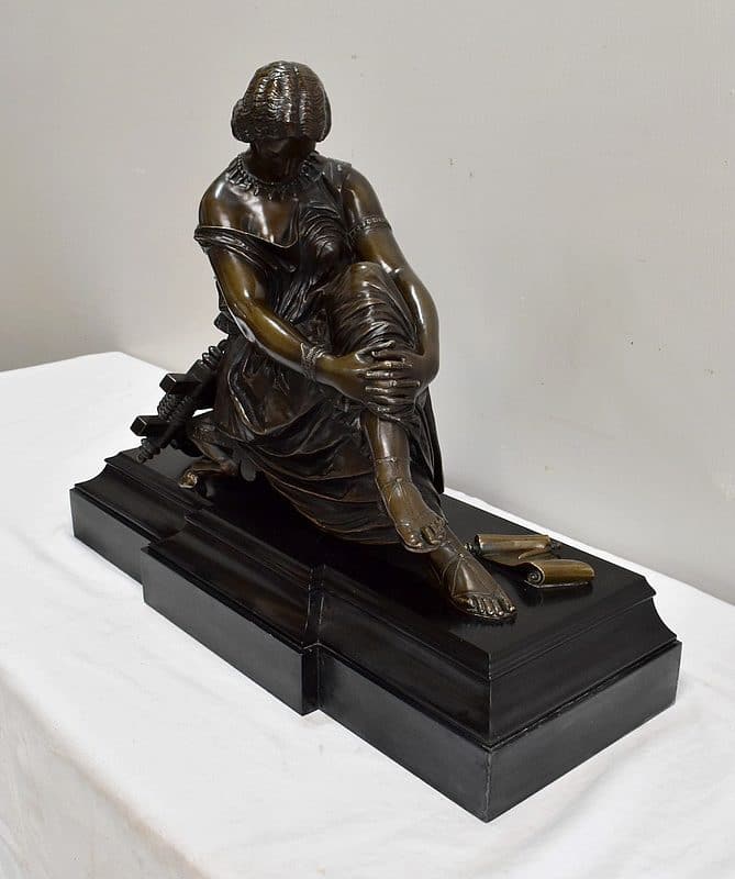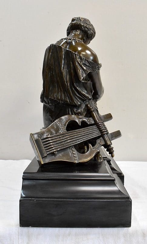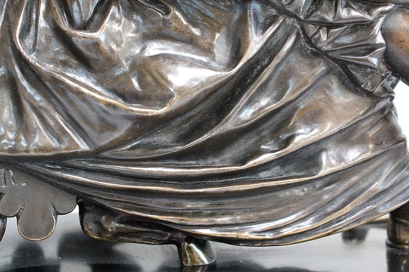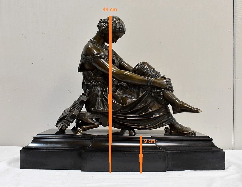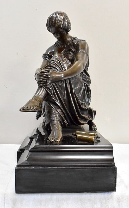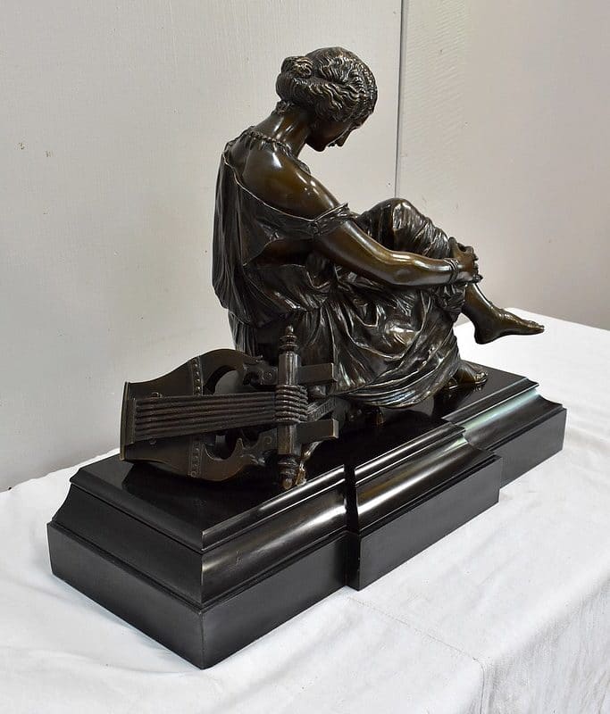 Ce Bronze est une réplique de « Sapho assise », Œuvre médaillée d’Honneur à titre posthume, exposée au Musée d’Orsay, et que l’on doit à Jean Claude – dit James – Pradier (1790 – 1852). L’Artiste français, né à Genève et élève de Lemot, est un Sculpteur Néoclassique Ambivalent. Le Corps Humain en général et la figure Féminine en particulier sont au cœur de son Art.