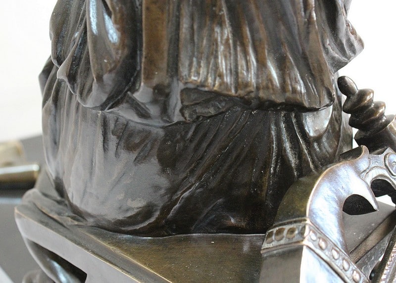Ce Bronze est remarquable de Réalisme, notamment grâce à la Qualité des détails Vestimentaires et des accessoires. Dans un registre Antique, l’Artiste a su nous transmettre à la fois la Sensualité et la Résolution de la Digne Poétesse du 7ème siècle avant JC. Par ailleurs, le socle parfaitement adapté met admirablement en valeur cette Œuvre.