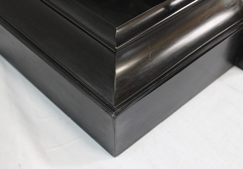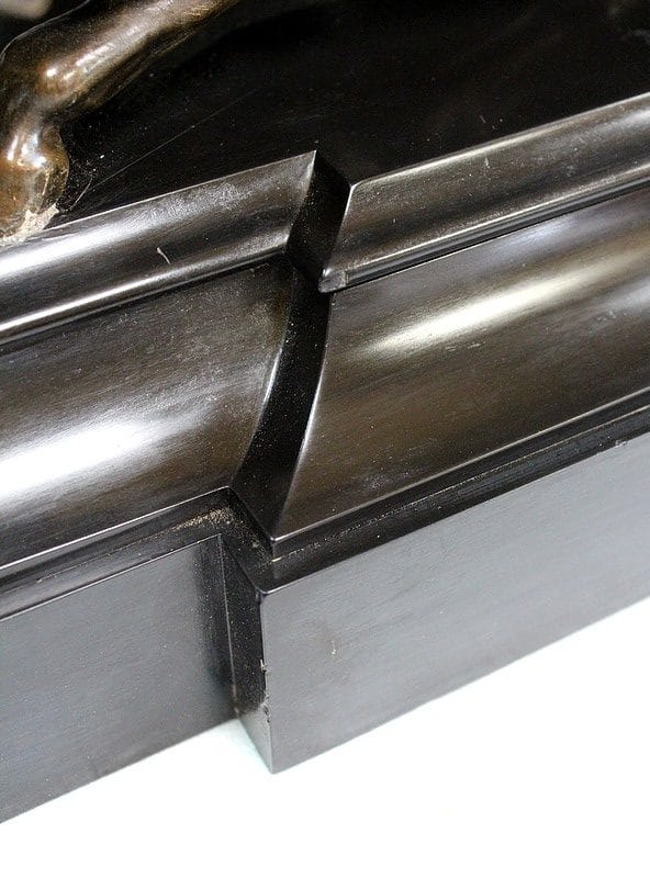 L’ensemble repose sur un large socle en Marbre Noir, aux pourtours moulurés et façonné avec une avancée.
