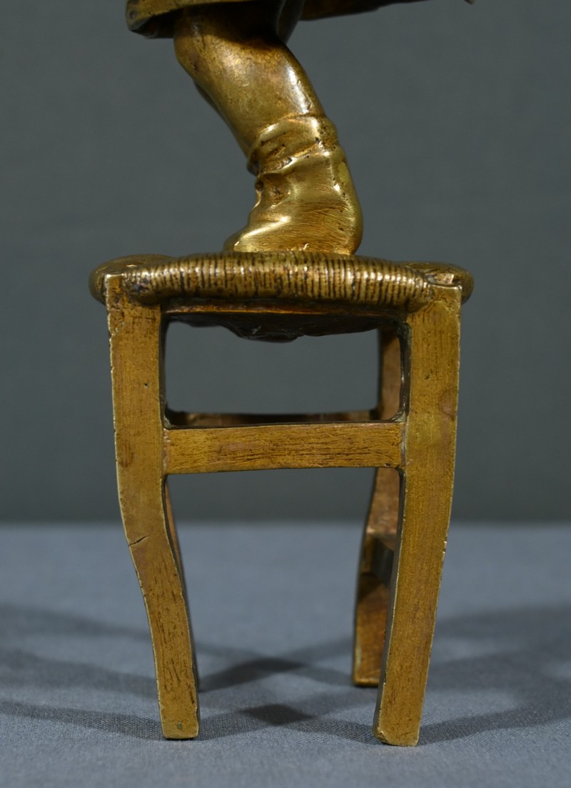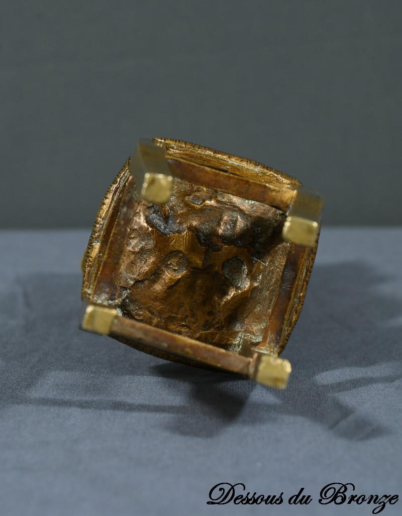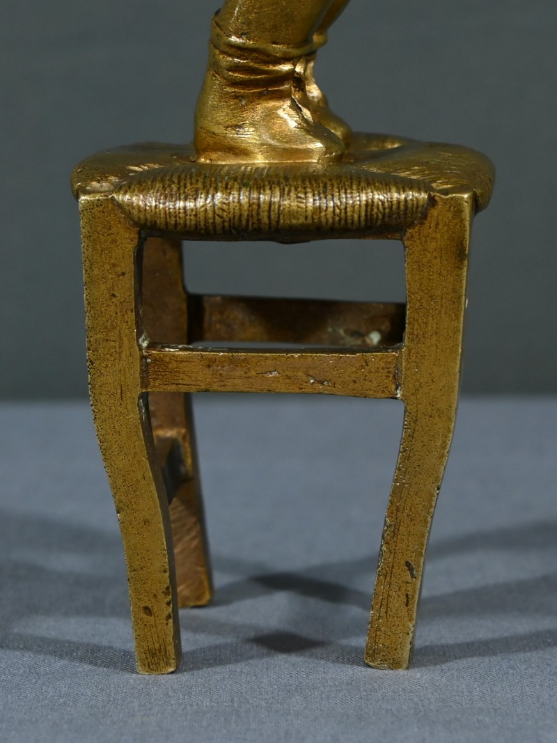 La patine dorée ajoute une touche de chaleur et de luminosité, mettant en valeur les subtilités du bronze.