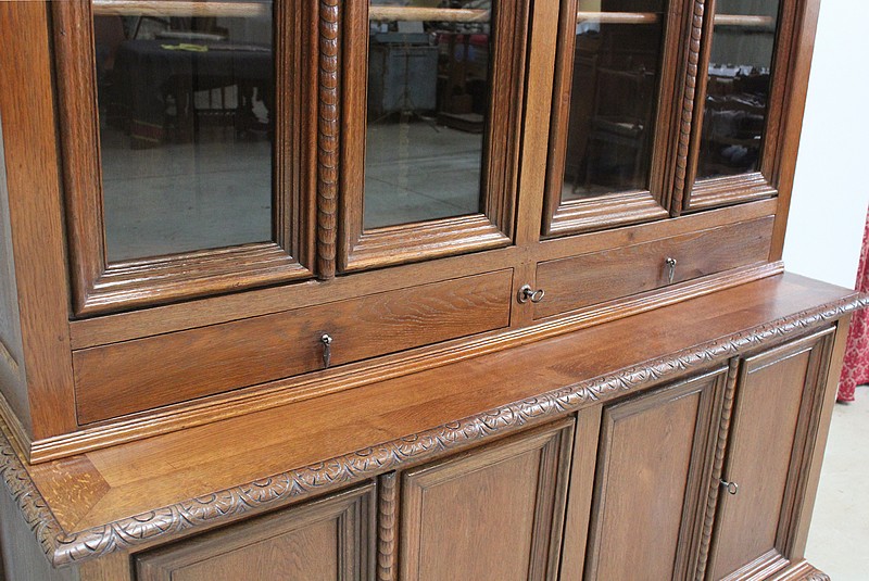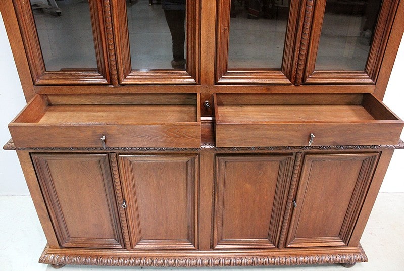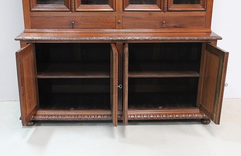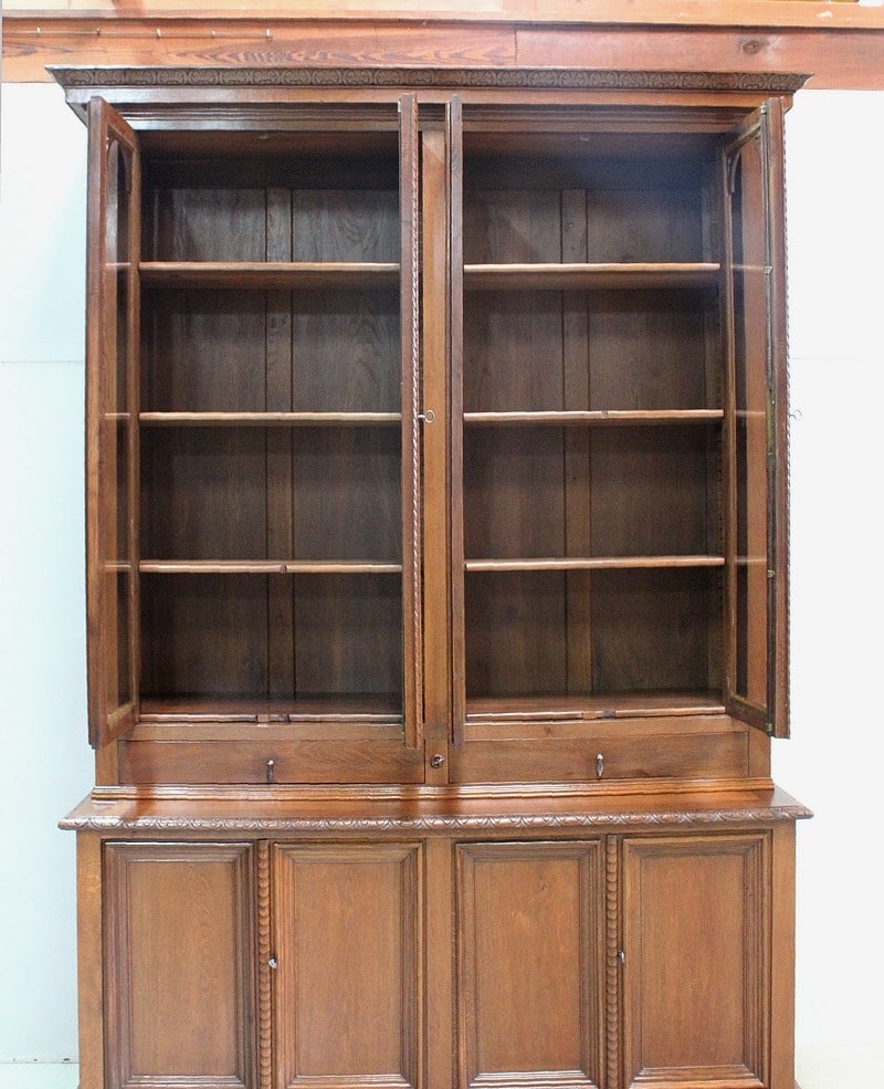 Bibliothèque deux-corps dans le goût Renaissance en Chêne massif.