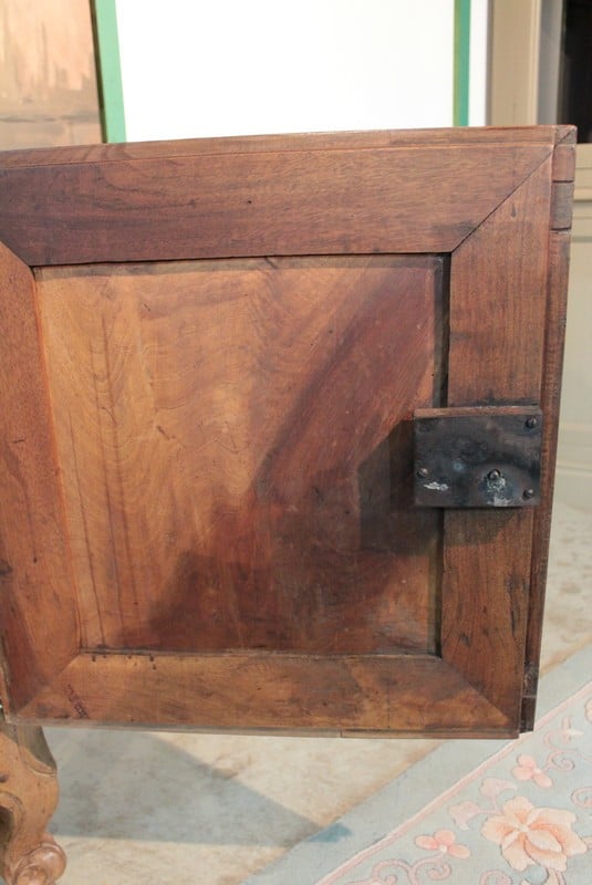 Fiches et entrées de serrures sont en cuivre. Il repose sur des pieds à enroulement à l’avant et droits à l’arrière. Époque : première moitié du XIXe