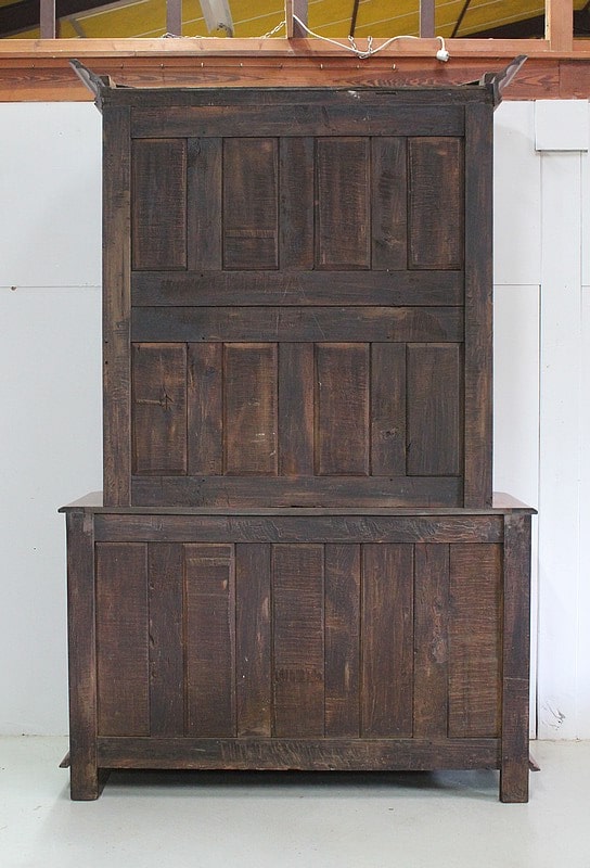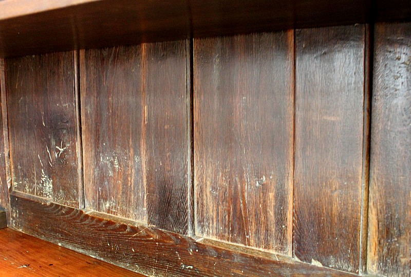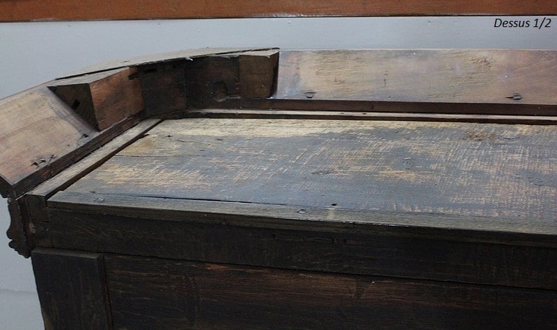 Les arrières sont en Chêne, conçus avec des montants et des panneaux légèrement travaillés, comme pour un meuble d’apparat.