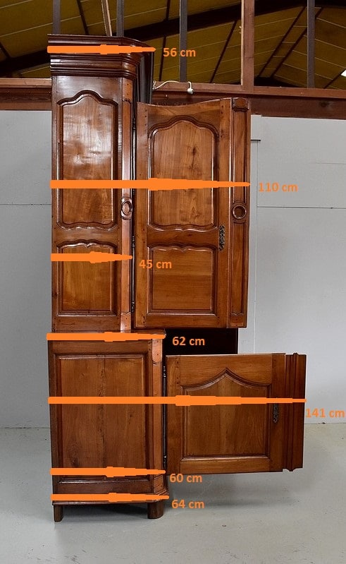 On soulignera l’élégance des lignes de ce Buffet Deux Corps originaire du Val de Loire, la jolie teinte de son bois, et son authenticité dans son intégralité.